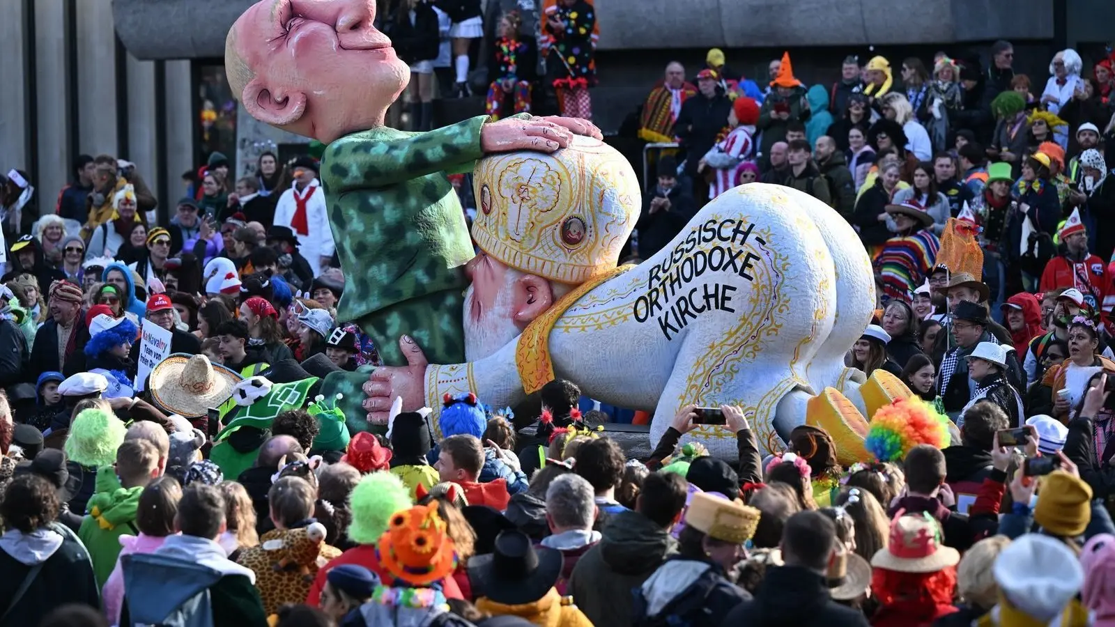 Besonders ein zwischen Kremlchef Wladimir Putin und Patriarch Kirill als Karikatur dargestellter Oralverkehr ist Gegenstand des umstrittenen Gerichtsverfahrens gegen den Karnevalisten Jacques Tilly. (Archivbild)