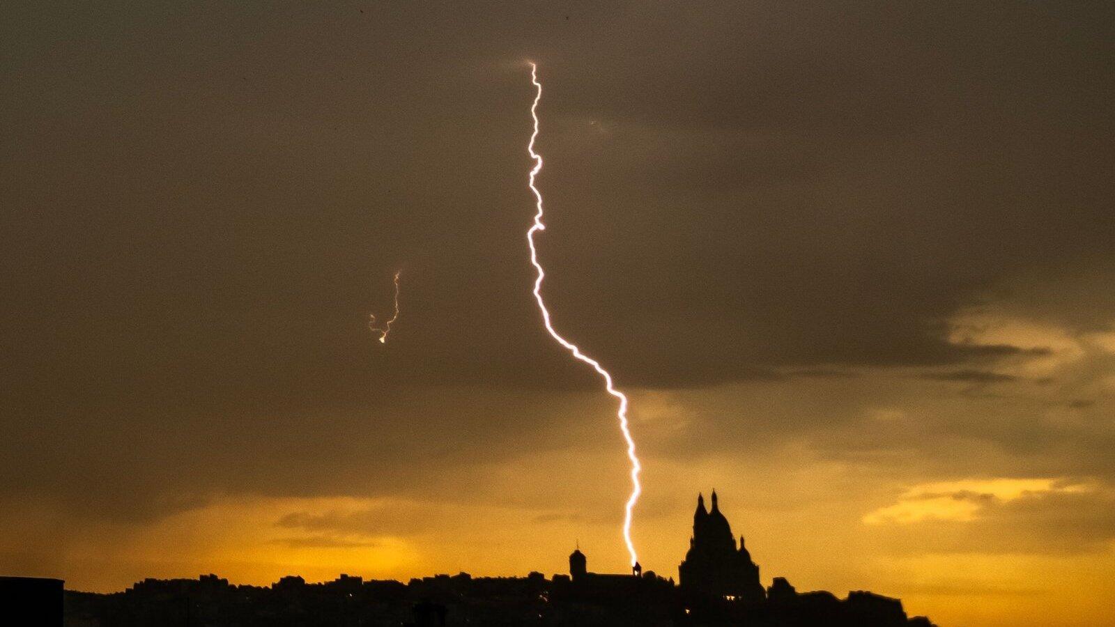 Einen Blitz entlädt sich während eines Gewitters in der Nähe der Basilika Sacre Coeur auf dem Hügel Montmartre in Paris. Studien bringen seit Jahren einen Vertrauensverlust der Franzosen in Institutionen zutage.