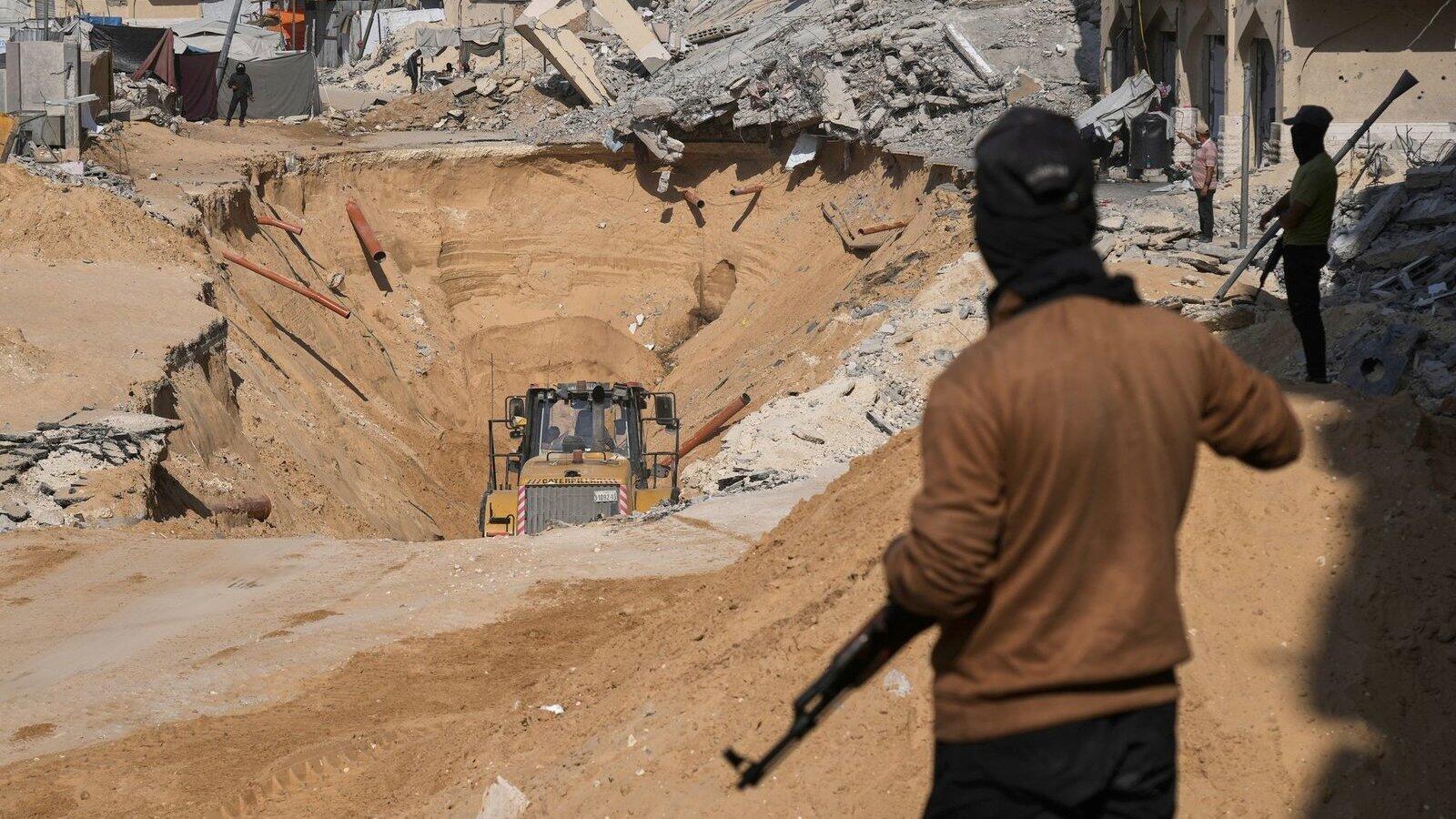 Mitglieder der islamistischen Hamas suchen nach Leichen israelischer Geiseln.