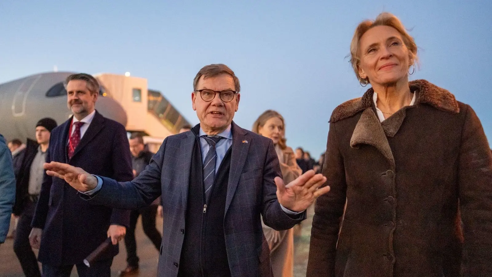 Außenminister Wadephul wurde unten am Flugzeug neben der isländischen Außenministerin Gunnarsdóttir auch von Vizekanzler Lars Klingbeil begrüßt.