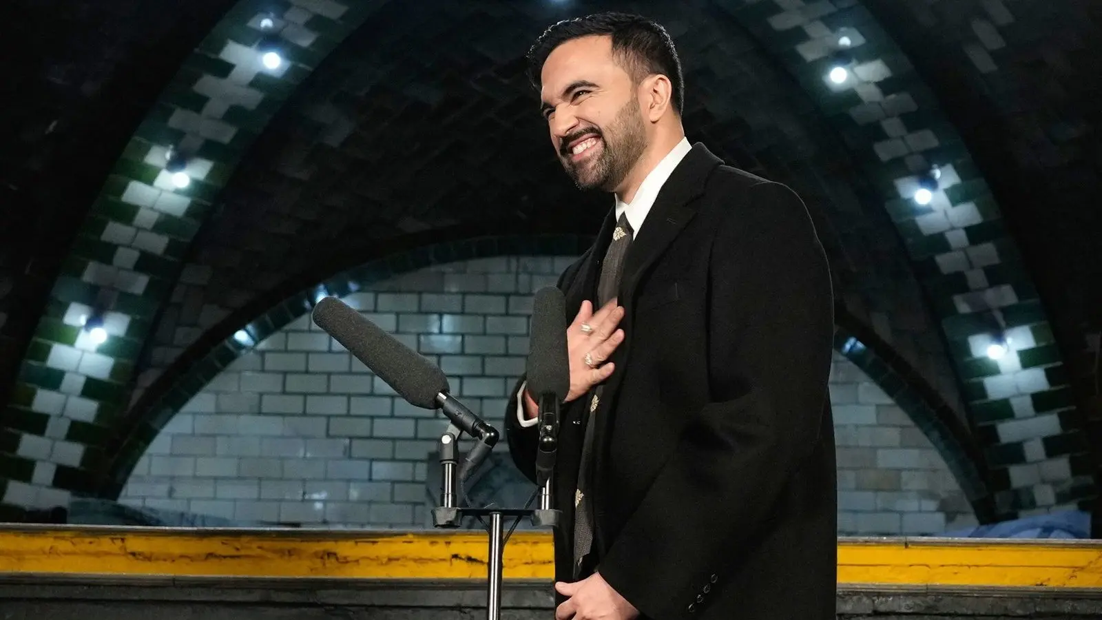 „Das ist wahrlich eine Ehre und ein Privileg, wie es sie nur einmal im Leben gibt“, sagte Mamdani in einer kurzen Ansprache. Die Wahl des Ortes soll nach Angaben seines Büros Mamdanis Verbundenheit mit der arbeitenden Bevölkerung unterstreichen. Die Haltestelle wurde 1945 stillgelegt und ist normalerweise nicht öffentlich zugänglich. In seinen ersten Worten als Bürgermeister kündigte Mamdani zugleich die Ernennung eines neuen Verkehrsbeauftragten an.