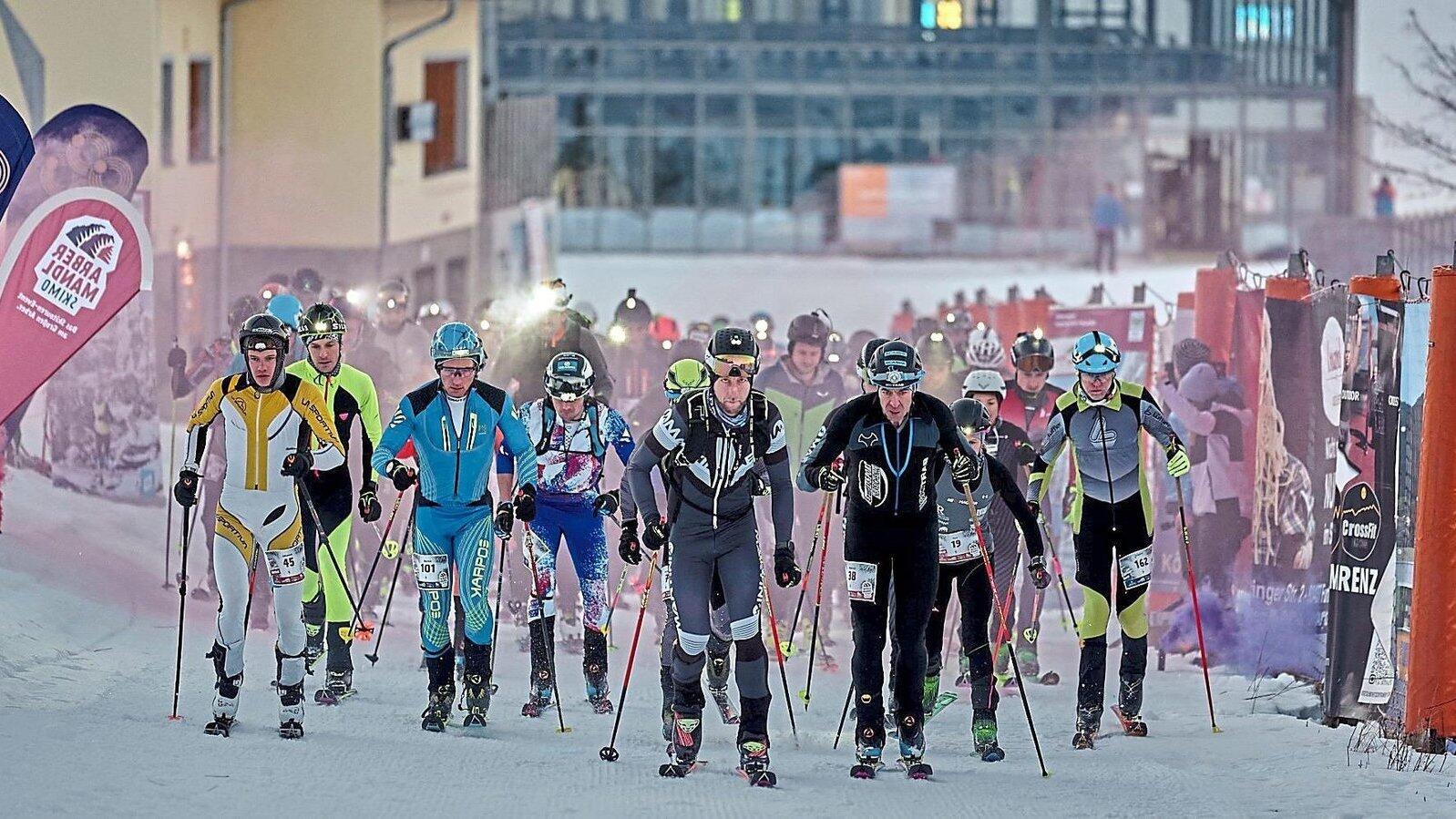 Im Schein ihrer Stirnlampen bildeten am Freitagabend Skitourengeher leuchtende Punkte, die sich in Richtung Arbergipfel schlängelten, brennende Fackeln wiesen den Weg entlang der Strecke - für Teilnehmer und Publikum