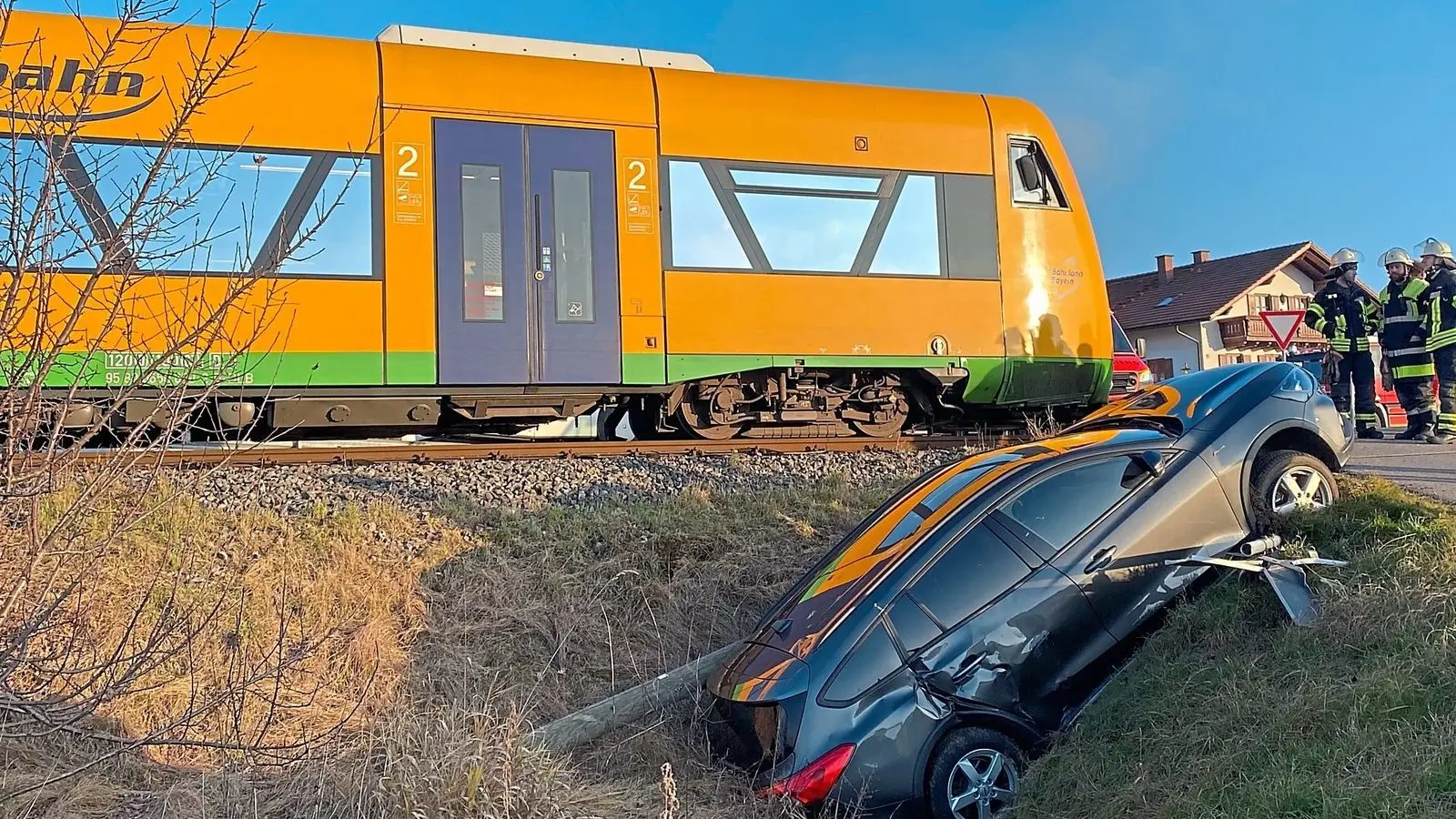 Durch den Zusammenprall mit dem Triebwagen wurde das Auto eines 65-Jährigen in die Böschung geschleudert.