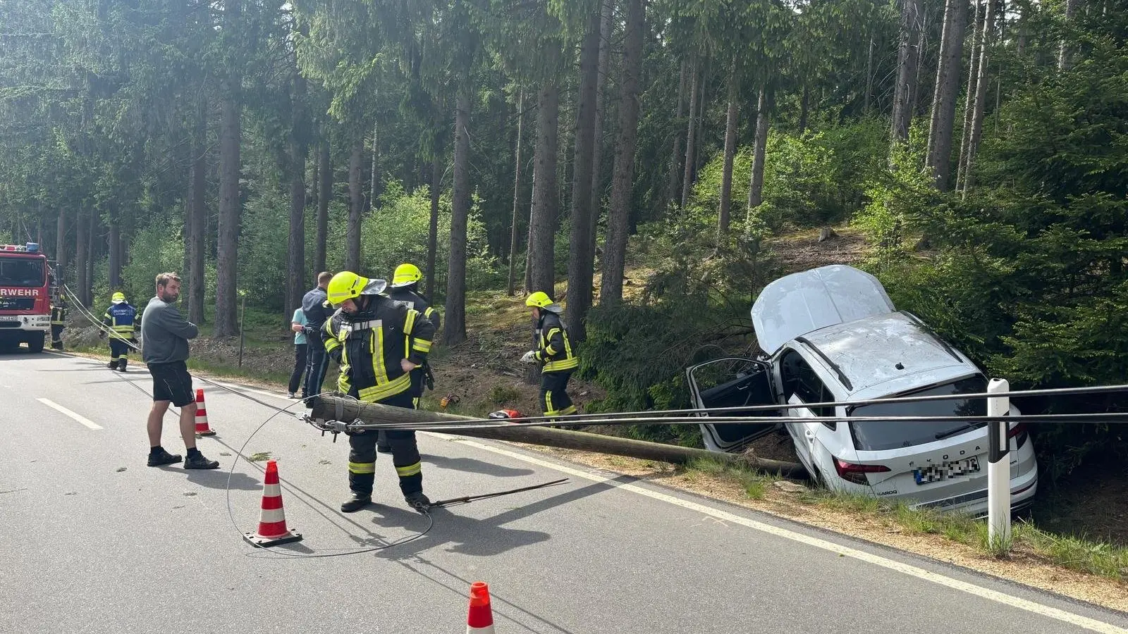 Die Feuerwehr Lohberg übernahm die Räumung und Reinigung der Unfallstelle und sicherte die noch intakte Telefonleitung. Die Feuerwehr Thürnstein-Schrenkenthal übernahm die Einweisung des Rettungshubschraubers. Am Unfallfahrzeug entstand laut Polizei Totalschaden.