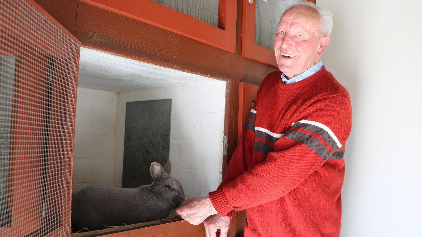 Kaninchenfreund durch und durch: Franz Hacker mit dem Marburger Feh "Tommy" - der Rasse, der sich der 83-Jährige verschrieben hat.