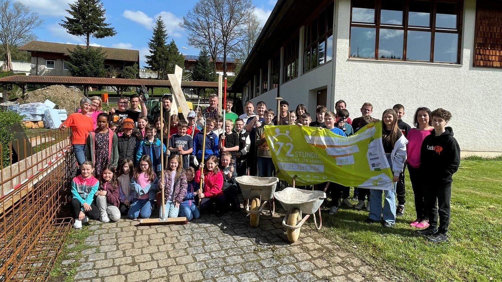 Grund- und Mittelschüler in Lam bauen Outdoor-Erlebnisplatz
