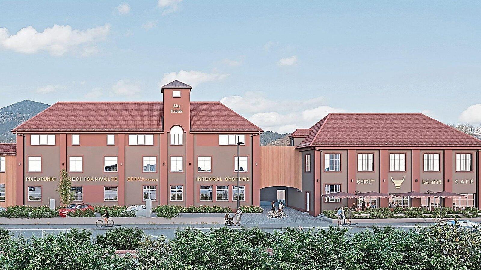 So soll die Fassade des neuen Geschäfts- und Bürokomplexes aussehen. Die Gebäude, die seit 1910 bestehen, bleiben erhalten.