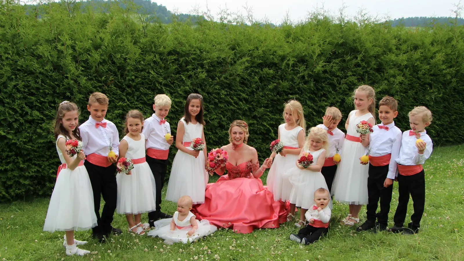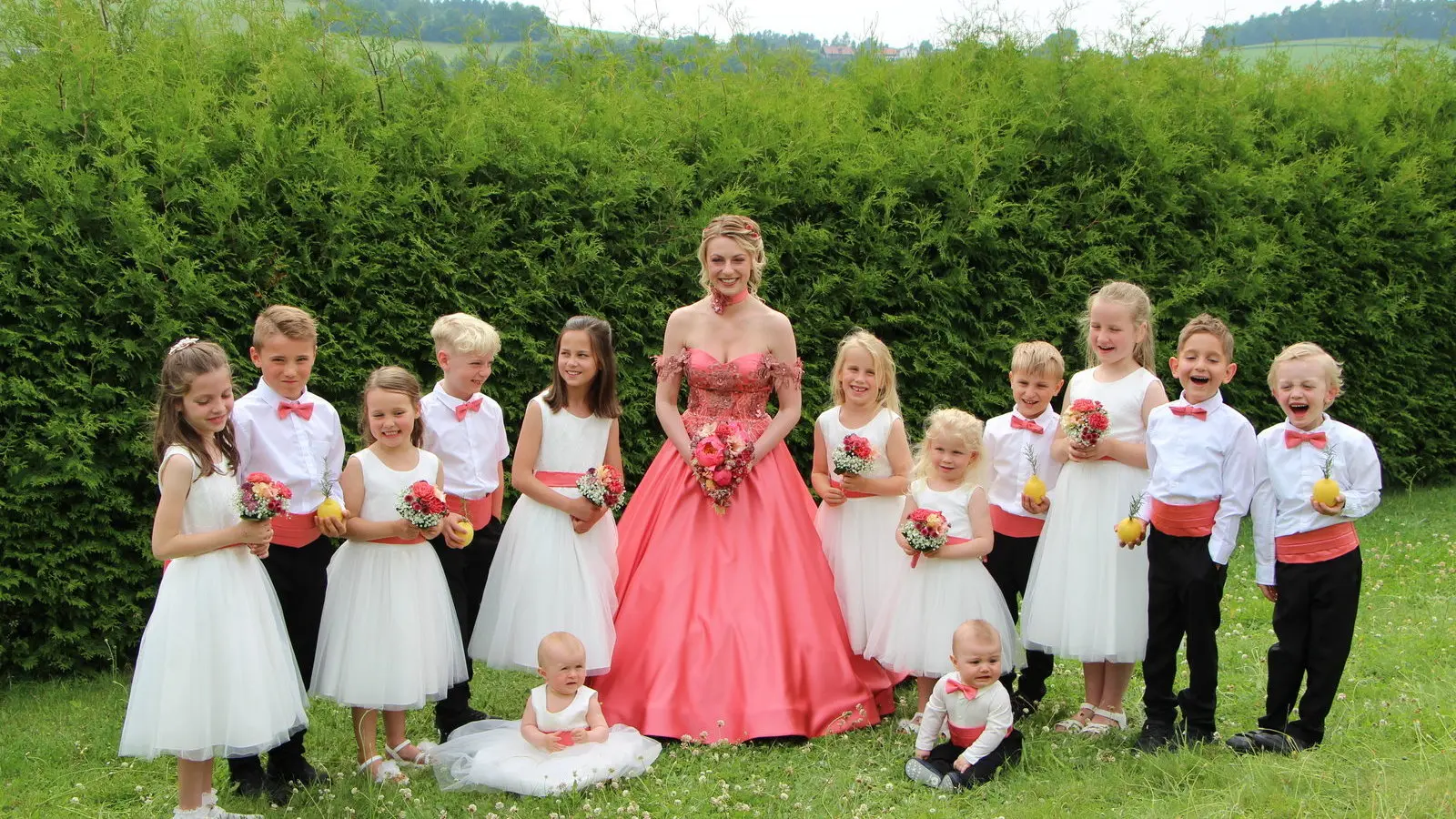 Natürlich gab sie auch einige Details zu ihrem Kleid bekannt, das sie sich schneidern ließ: Die Robe im Farbton „Koralle“ hat einen Herzausschnitt, eine Schleppe sowie eine Schnürung am Rücken. Die Ärmel aus Spitze sind Pielmeiers Highlight, sie sorgen für den Prinzessinnen-Look. Zum Blumenstrauß: Auch am zweiten Tag der Pfingsthochzeit setzte die 28-Jährige unter anderem auf Pfingstrosen.