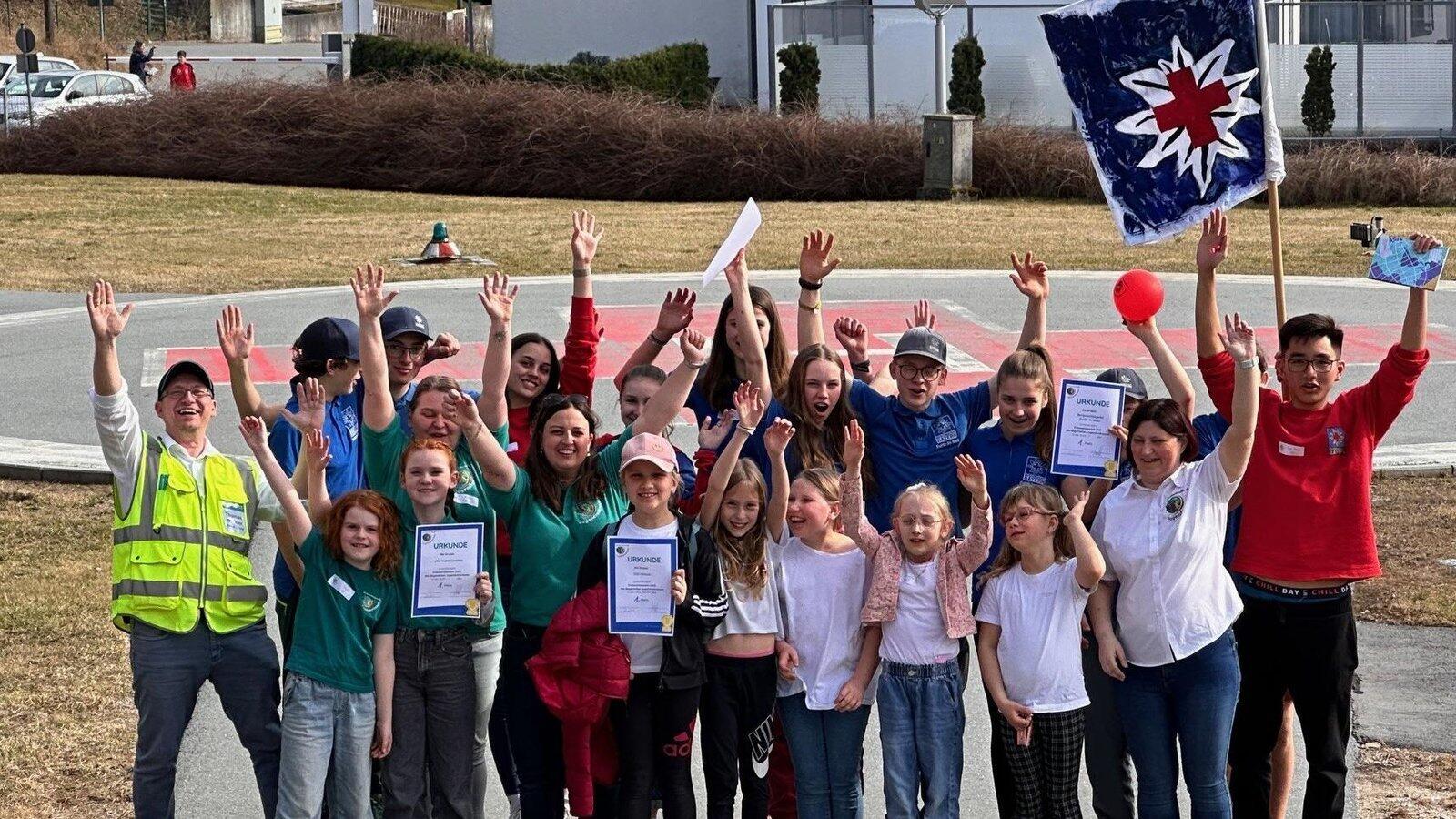 Und dann die Hände zum Himmel! Beste Stimmung herrscht bei den Siegerteams, die Ende Mai zum Bezirkswettbewerb in den Landkreis Kelheim fahren.
