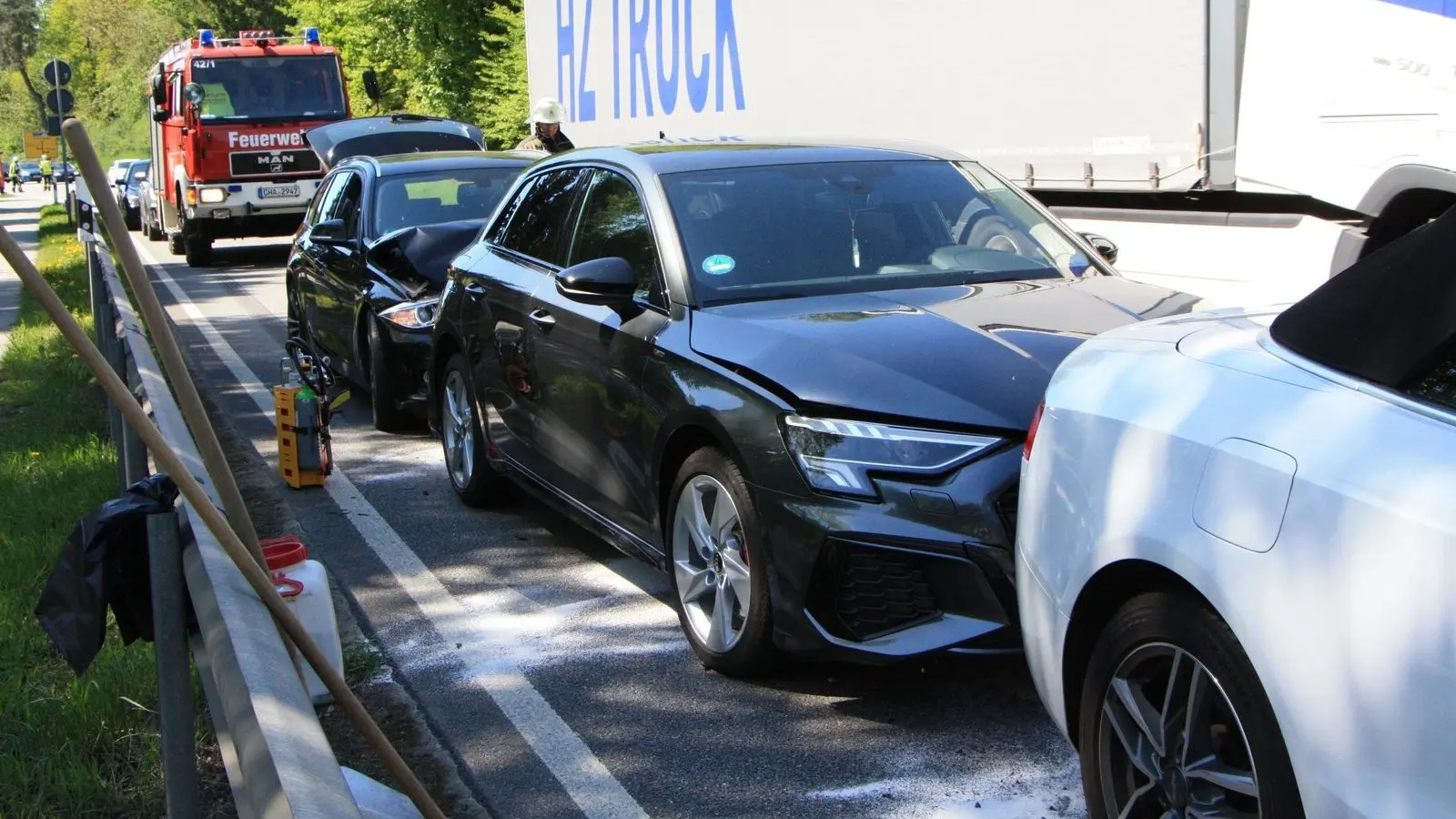 Nach Aussage der Polizei hatte kurz vor elf Uhr der Fahrer eines Lastwagens auf Höhe Trebersdorf verkehrsbedingt abbremsen müssen. Der nachfolgende Wagen verlangsamte ebenso, der zweite Wagen dahinter schaffte es gerade noch, aber das dritte Fahrzeug, ein BMW, krachte in die Schlange und schob drei Autos aufeinander.