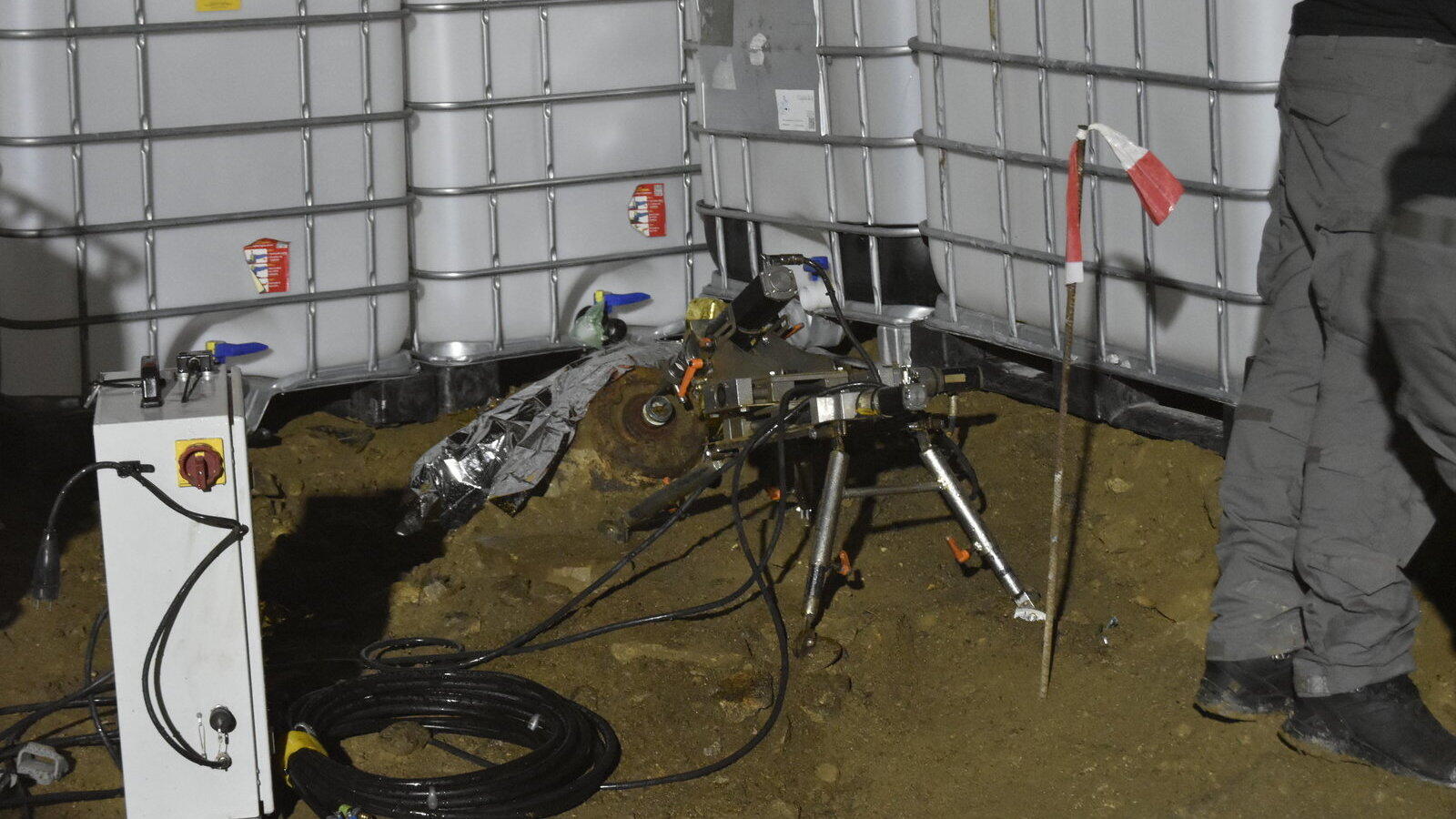 Parallel zu den Evakuierungsmaßnahmen errichteten die Einsatzkräfte um die Bombe einen Wall aus elf Containern.