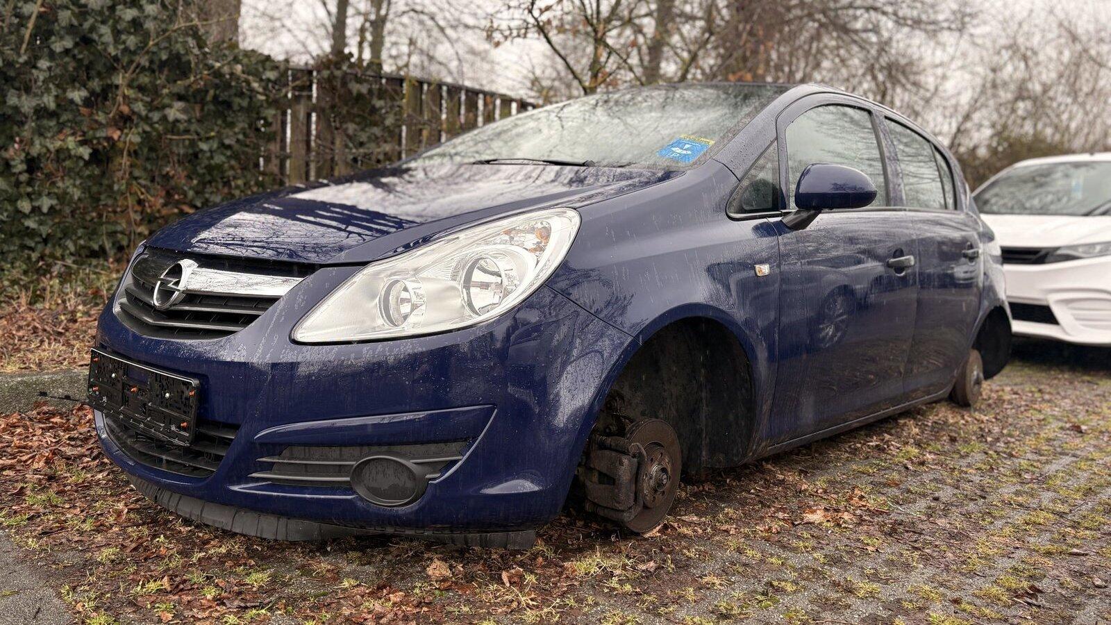Das Nummernschild scheint herausgerissen, rostige Radaufhängungen erinnern an Reifen und vom hinteren Rücklicht ist nur ein Loch übrig.