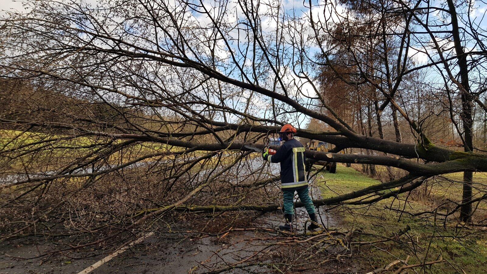Einmal mehr in diesem Jahr haben die Feuerwehre im Landkreis in der Nacht viel Holz machen müssen. Sturmtief Eberhard brachte von Sonntag auf Montag heftige Böen, Bäume knickten und Dächer nahmen Schaden.