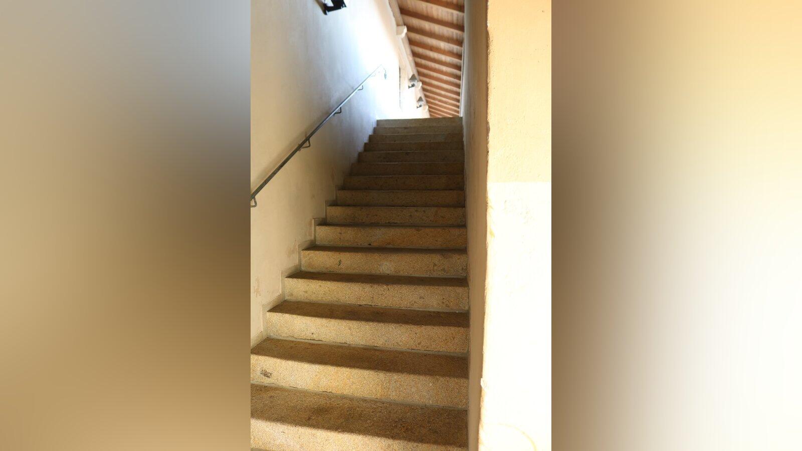 Das sind die Stufen hoch in den ersten Stock, zur Galerie des Cordonhauses. Von Barrierefreiheit ist hier noch keine Spur.