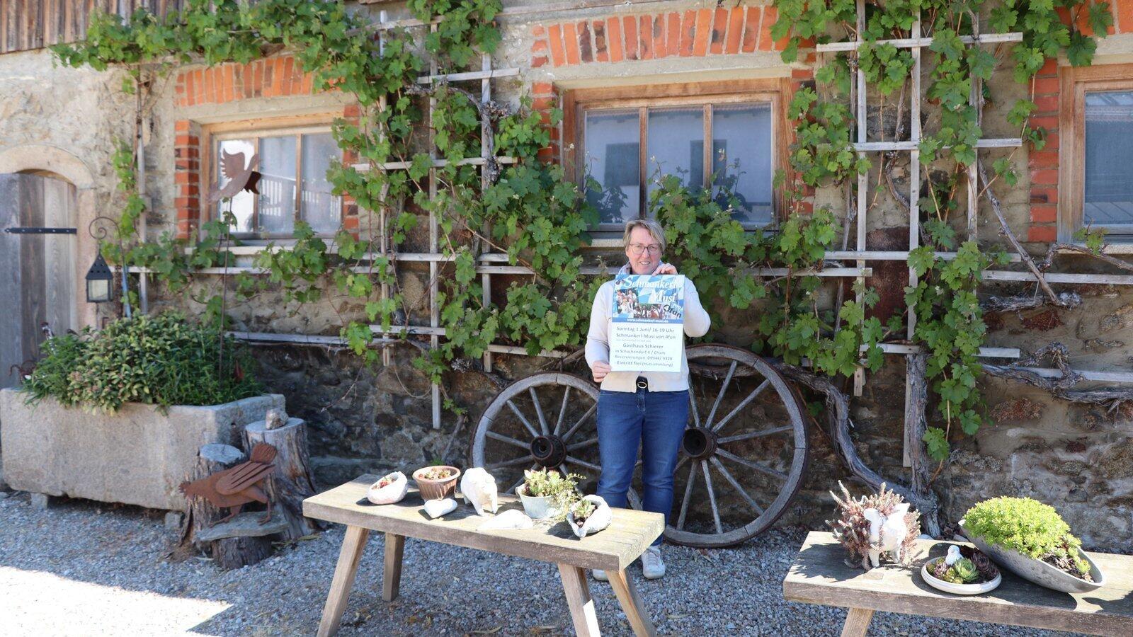 Sonja Schierer veranstaltet im Innenhof ihres Wirtshauses ein Sommerfest mit der Schmankerl-Musi.