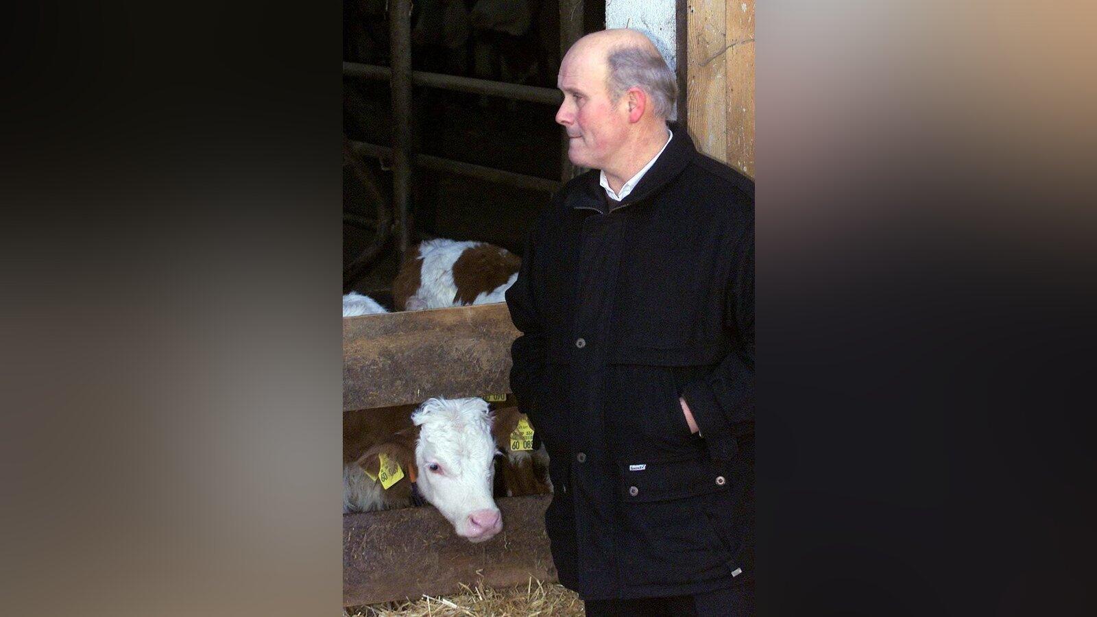 Der Landwirt Adam Ries schaut kurz vor Weihnachten 2000 im oberpfälzischen Stamsried in seine Stallungen, in denen bei einem vier Jahre alten Rind der zweite BSE-Fall in Bayern nachgewiesen wurde.