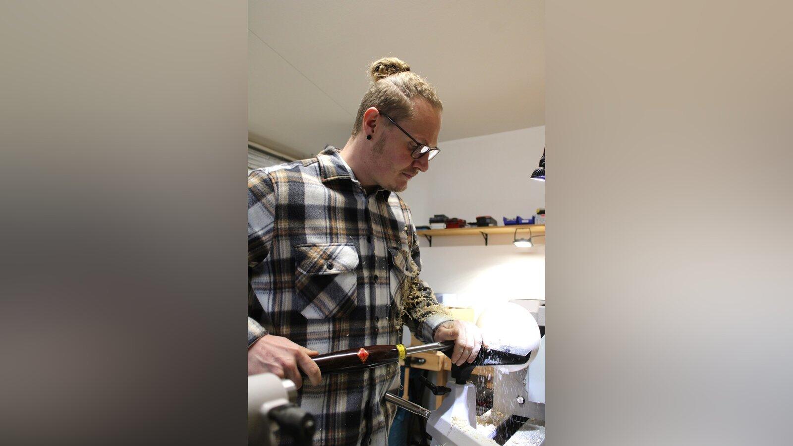 Schalen, Mühlen, Vasen, Becher - wer sich in Sebastian und Barbara Kreuzers Keller umsieht, wird fündig. Hier, in einer kleinen Werkstatt, verbringt Sebastian seine freien Minuten.