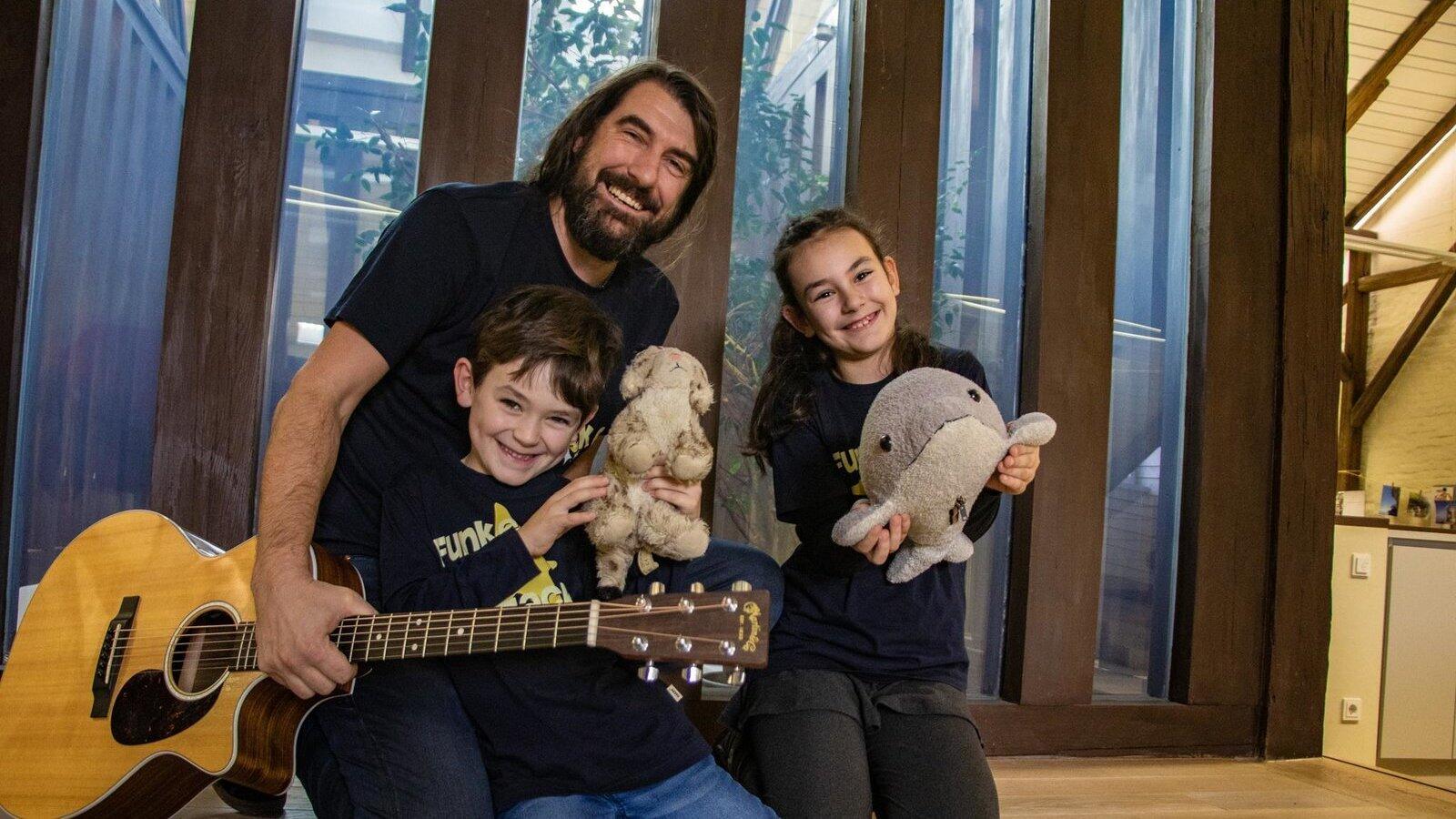 Pauli Fischaleck mit seinen Kindern Michael und Marie will beim Nachwuchs die Lust auf Musik wecken.