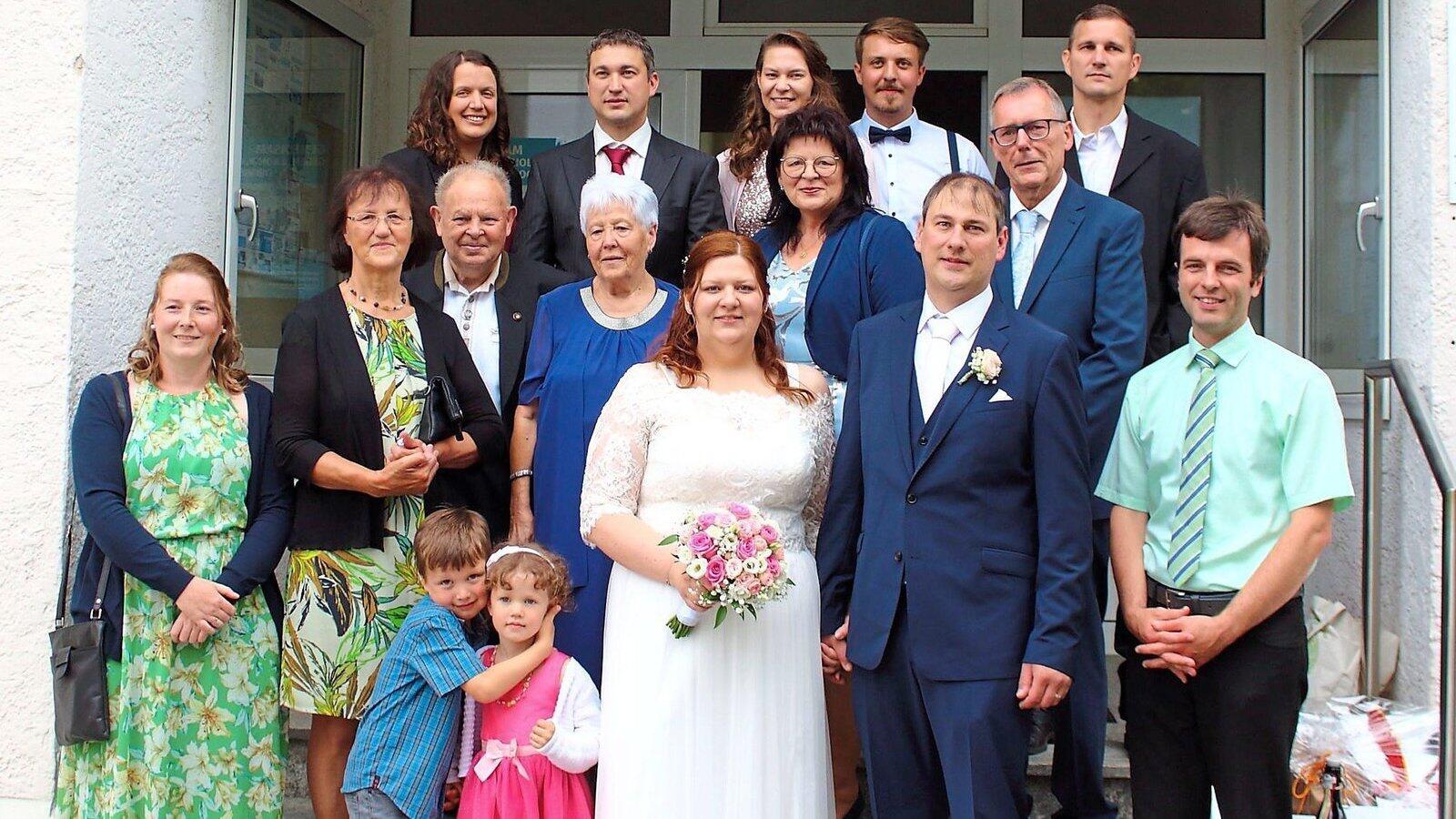 Die Familien der beiden Brautleute Yvonne und Andreas Früchtl ließen das Paar am Mittwoch hochleben und wohnten der standesamtlichen Trauung im Rathaus Weiding bei.