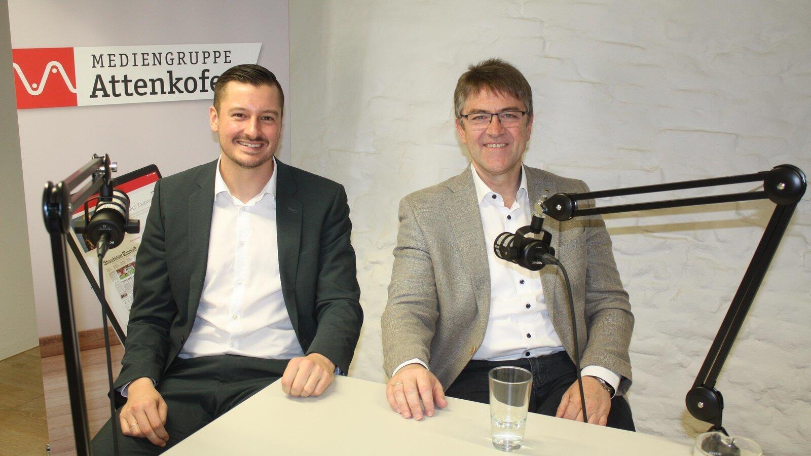Gipfeltreffen vor dem Podcast-Mikrophon. Auf Einladung der Mediengruppe Attenkofer, zu der die Chamer Zeitung gehört, treffen Freie Wähler-Kandidat Christian Schindler (links) und CSU-Bewerber Michael Multerer aufeinander. Das Gespräch gibt es unter idowa.de zum Nachhören.