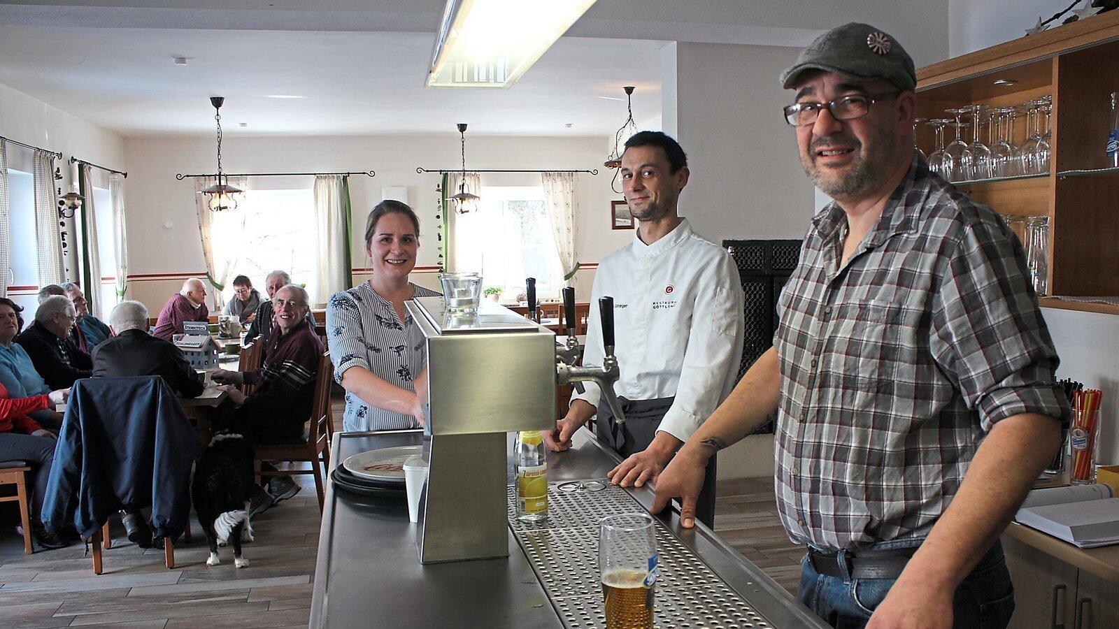 Das Trio hinterm Tresen: Annika Andersson, Martin Göttlinger und Ralph Steuerer haben auf dem Lamberg alles im Griff. Die Gäste freut's - die kommen sicher wieder.