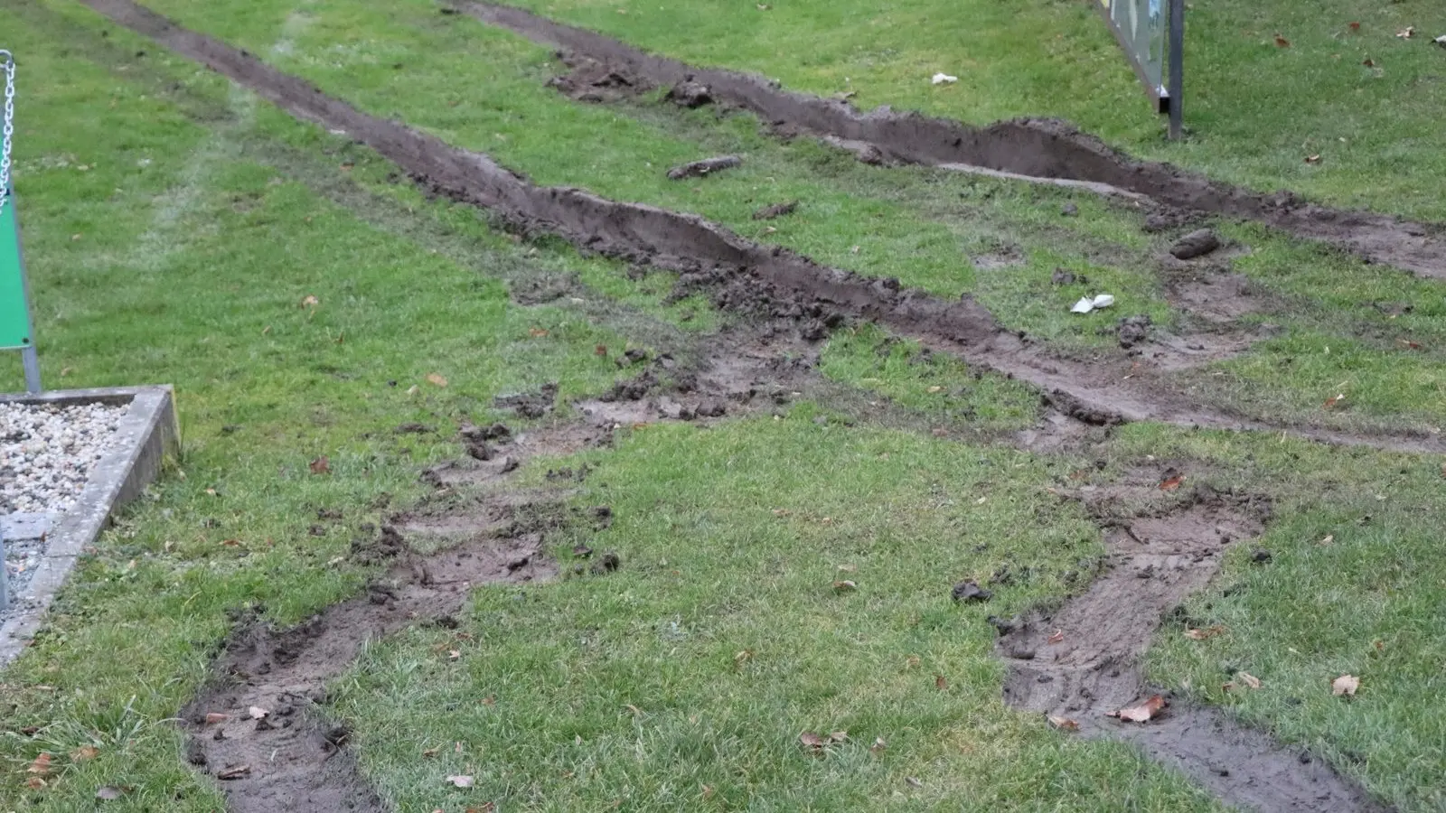 Die Spuren im Fußballplatz sind auch am Montag nach den Versuchen eines 54-Jährigen, wieder auf die Straße zu kommen, zu sehen.