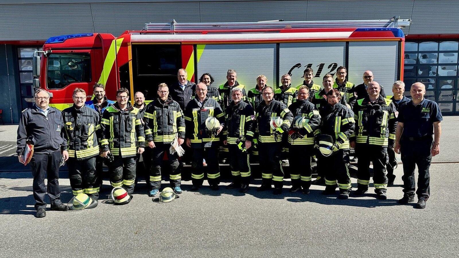 Die Kommunalpolitiker zusammen mit den Further Feuerwehrmännern, die sie unterstützt haben, und den Schiedsrichtern