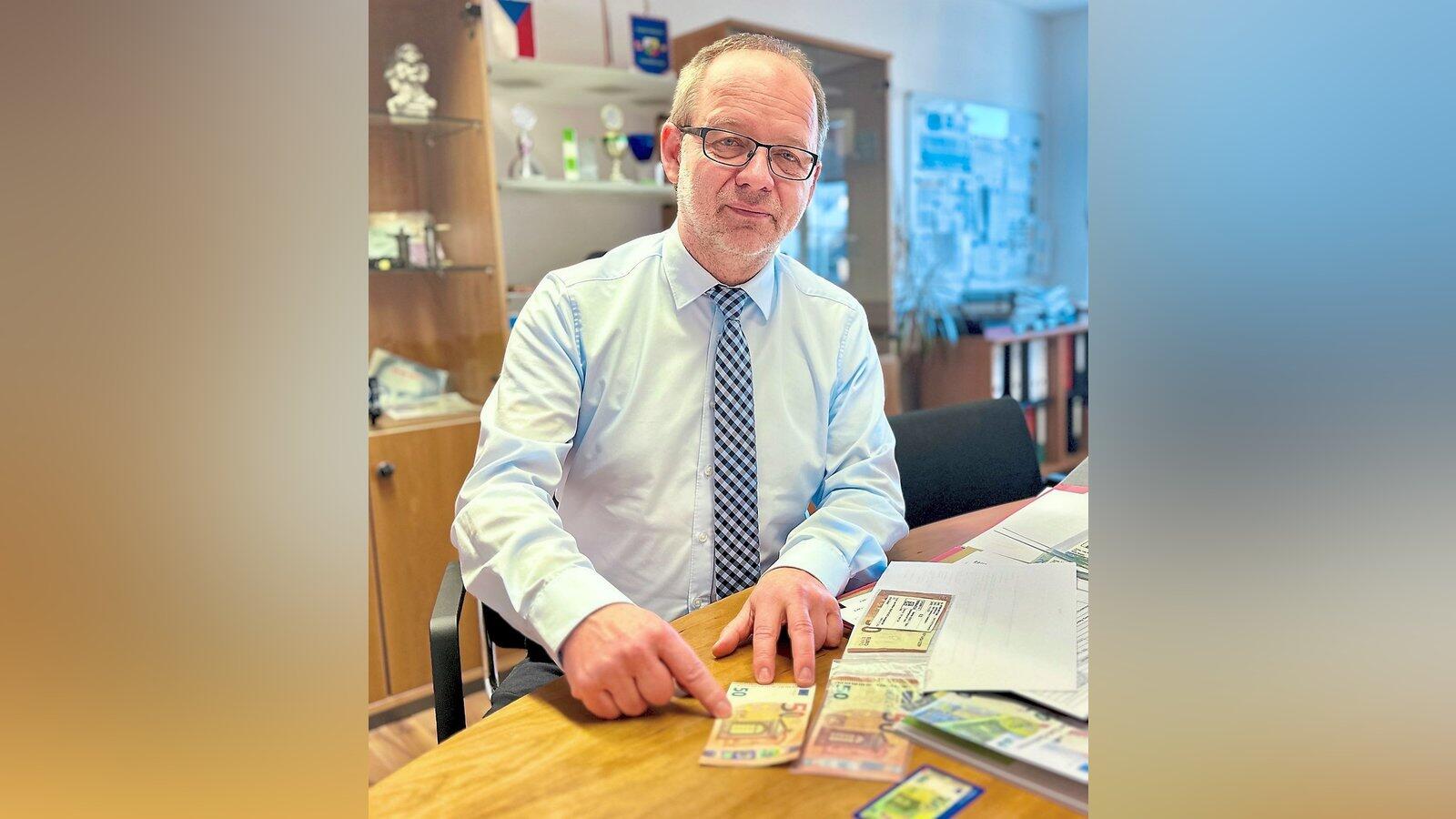 "Darauf ist zu achten!": Erster Kriminalhauptkommissar Michael Leitermann, Leiter des K10, zeigt, an welchen Indizien man nachgemachte von echten Geldscheinen unterscheiden kann.