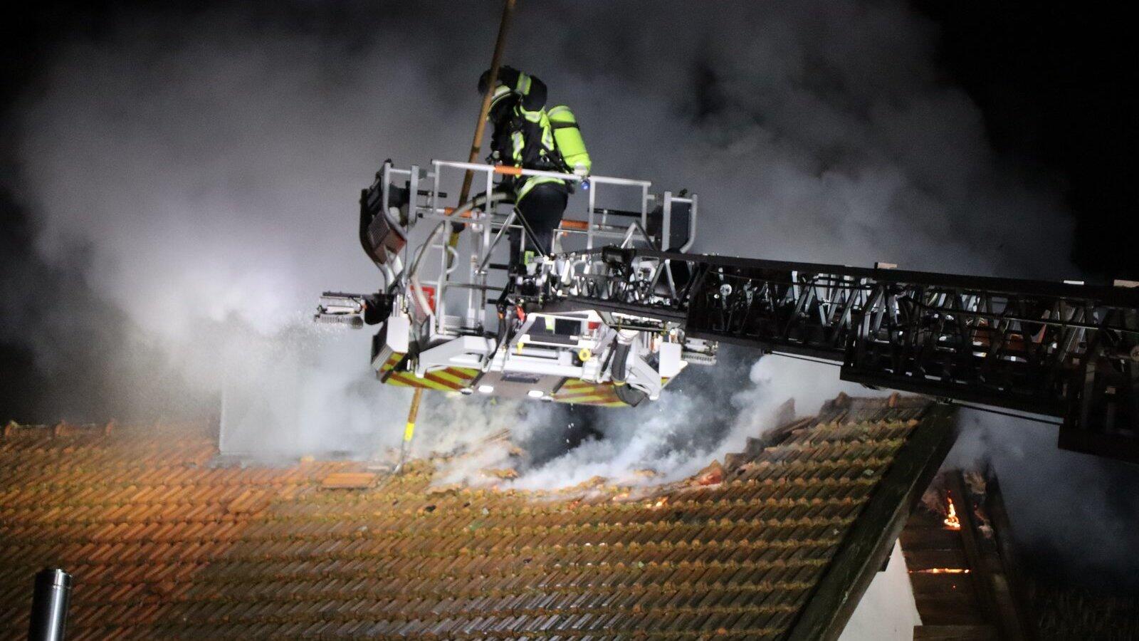 Auch der Rettungsdienst war vor Ort. Verletzte mussten jedoch nicht versorgt werden. Die Sanitäter überwachten vor allem den Einsatz der Feuerwehrleute medizinisch. Nach ersten Einschätzungen entstand an dem Gebäude ein Schaden in niedriger sechsstelliger Höhe, teilte die Polizei mit.