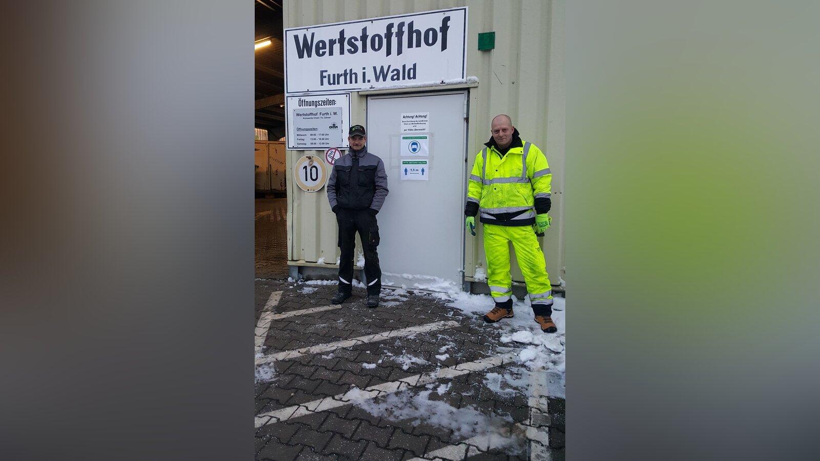 Peter Hackenberg (links) und seine Mitarbeiter Marco Gessner und Heinz Kult (nicht im Bild) bescheinigen den Furtherern großes Engagement für die ordnungsgemäße Wiederverwertung recyclebarer Stoffe.