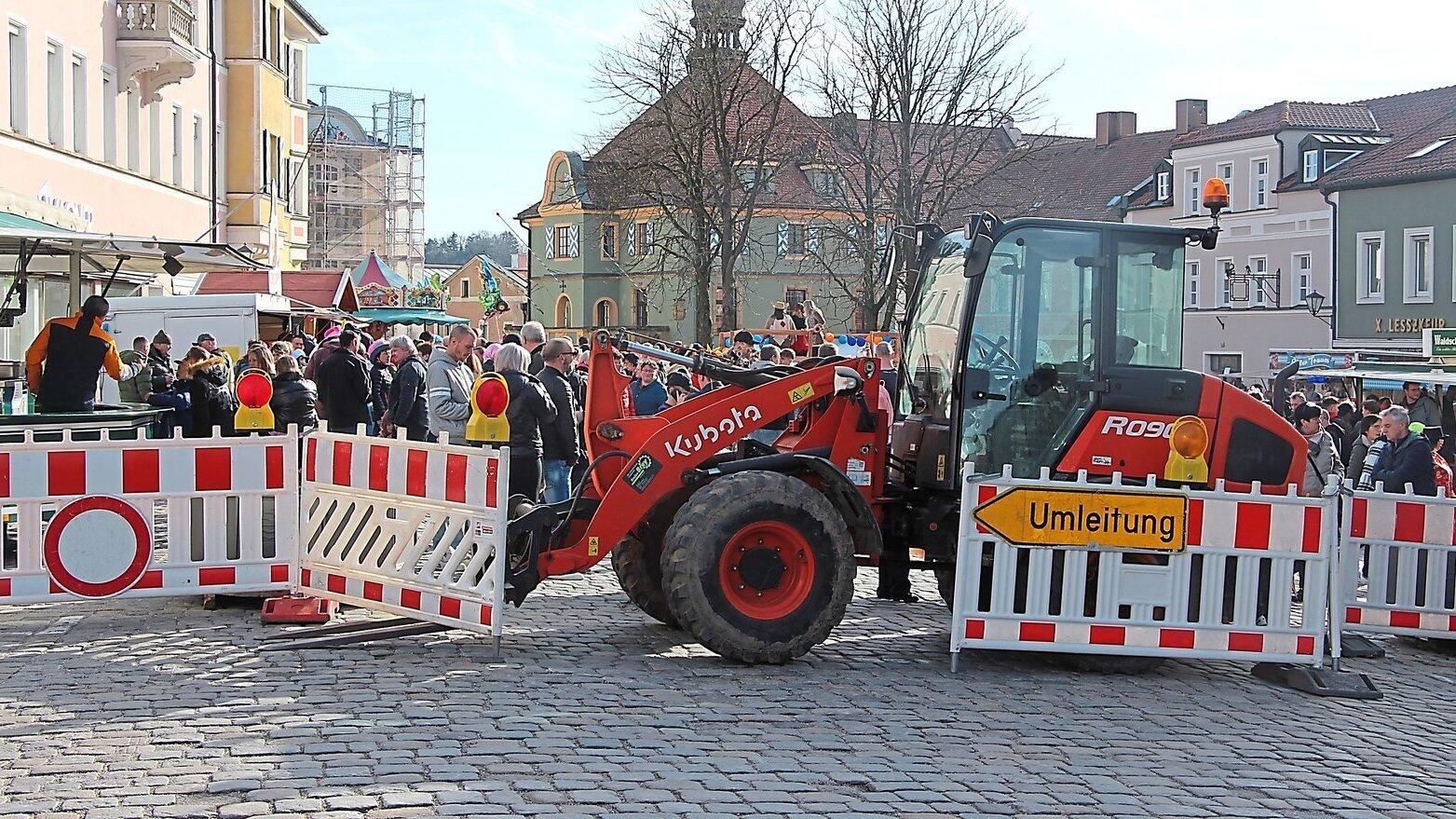 Der Radlader des Bauhofs und die Blumenkisten vom Stadtplatz dienten als Barriere gegen mögliche Anschläge mit Fahrzeugen.