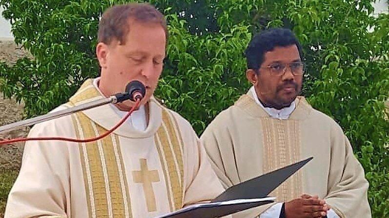 Pfarrvikar Thomas K. Samuel (rechts) und Diakon Thomas Bauer zelebrierten die Messe.
