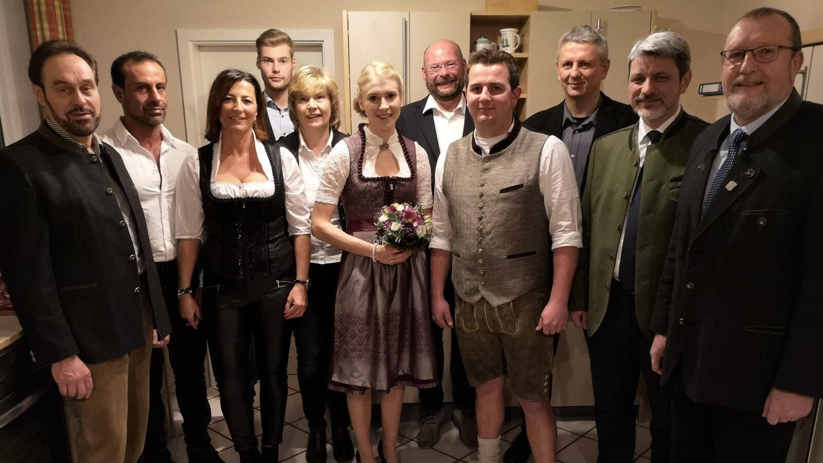 Inspizient Heinz Winklmüller, Murat Dogan, Sabine Jarosch, Philipp Decker, Conny Decker, Ritterin Stefanie Decker, Herwig Decker, Ritter Manuel Jarosch, Stephan Jarosch, Bürgermeister Sandro Bauer und Drachenstich-Organisationsleiter Karl-Heinz Späth.