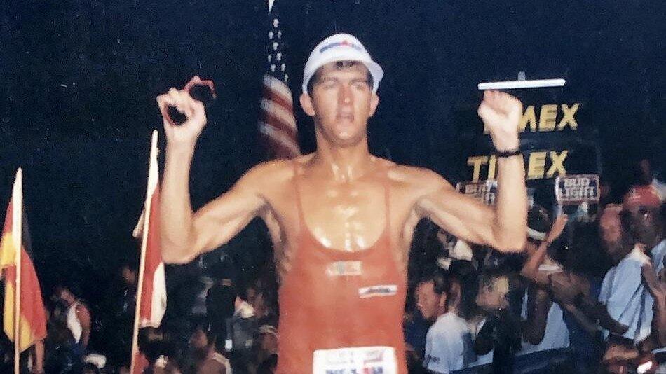 Einer seiner größten Augenblicke: 1988 finisht Neumann den extrem harten Ironman-Triathlon auf Big Island/Hawaii.