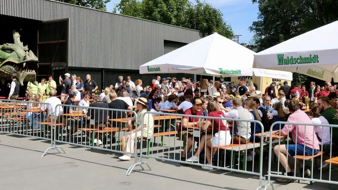 Vor der Drachenhöhle angekommen, wurden sie von „Fanny“, die lautstark aus dem geöffneten Tor brüllte, begrüßt. Zum Dank erhielten alle Teilnehmer einen Umtrunk. Das Gros war sich einig - so war es zumindest in Gesprächen zu hören -, dass dieser Spielscharzug eine gelungene und würdige Alternative zum traditionellen Festwirt-Auftakt darstellte. Dennoch dürfte er einmalig bleiben, denn im kommenden Jahr soll es wieder ein Drachenstich-Volksfest geben - und damit auch einen Festwirt-Einzug. Welche Brauerei diesen begleitet, wird im Herbst ausgeschrieben.