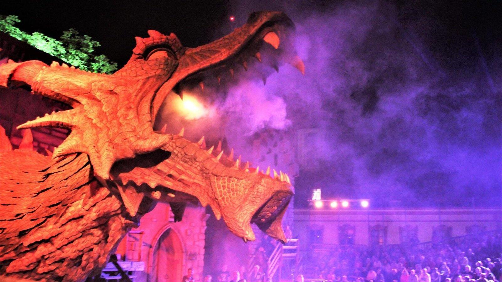 Kein Ritterschwert im Nacken aber dafür einen von der Drachenmannschaft umgehaun: Fanny, Drache aus dem Festspiel "Der Drachenstich" zeigte sich auf der Hauptprobe von ihrer besten Seite.