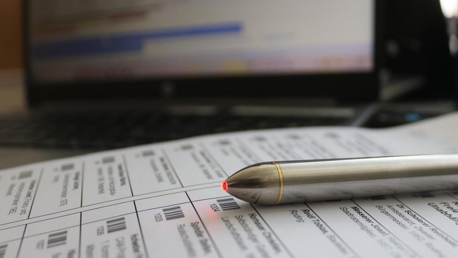 Seit 2002 erleichtern Scannerstifte und neuerdings auch Handscanner die Auszählung auf den teils tischdeckengroßen Stimmzetteln für Stadtrats- und Kreistagswahl.