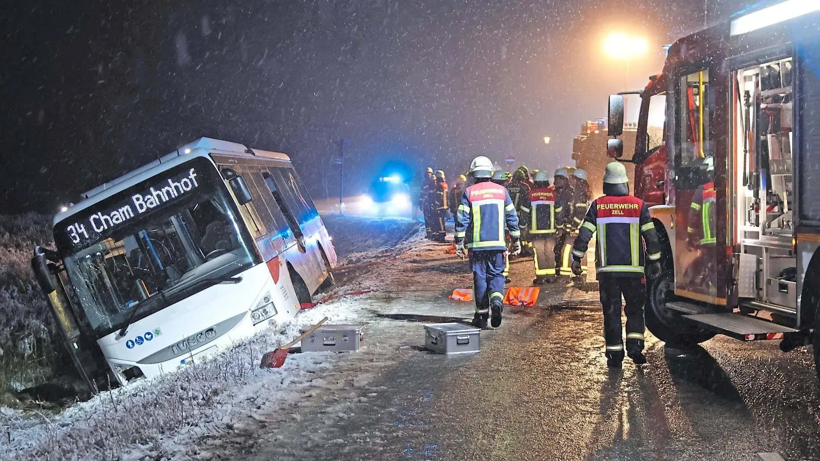 Der Wintereinbruch, vor allem in höheren Lagen des westlichen Landkreises, hat am Donnerstagabend nicht nur den Winterdienst auf Trab gehalten. Ein Großaufgebot von Rettungskräften ist gegen 18.20 Uhr auf die Staatsstraße zwischen Hetzenbach und Zell ausgerückt, wo ein Bus von der schneeglatten Fahrbahn eine Böschung hinuntergerutscht war. Von den sieben Personen im Fahrzeug wurden drei leicht verletzt.