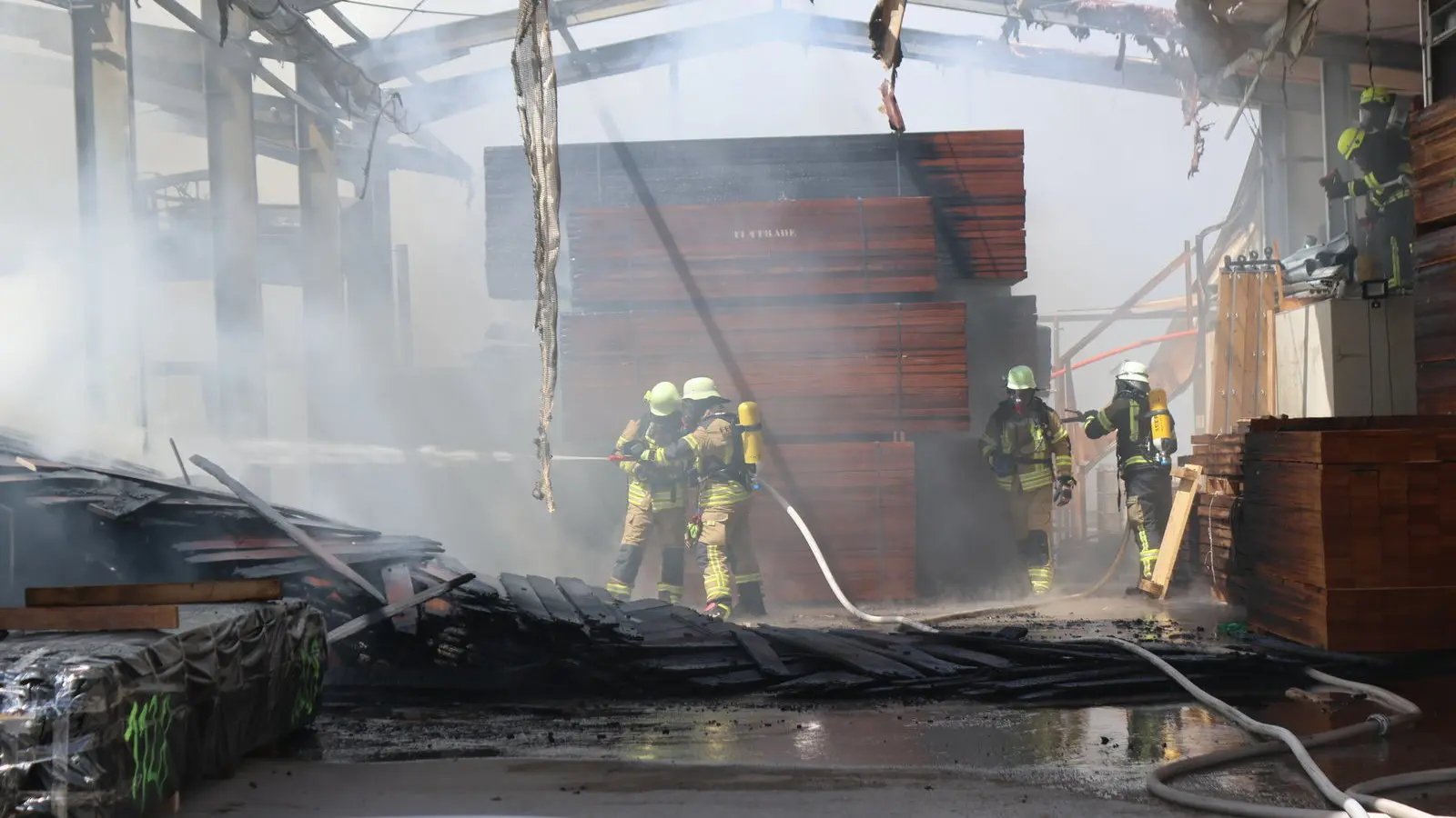 In den beiden Lagerhallen, erbaut vor erst drei Jahren als Stahlträgerkonstruktion, lagerte das Unternehmen Holzbündel für die weitere Verarbeitung ein. Die Heizungsanlage und eine Trocknungskammer sowie ein Öl- und ein Gastank blieben nach ersten Angaben von den Flammen verschont. Die 20-KV-Hochspannungsleitung vor dem Betriebsgelände wurde zur Sicherheit rasch außer Betrieb genommen.