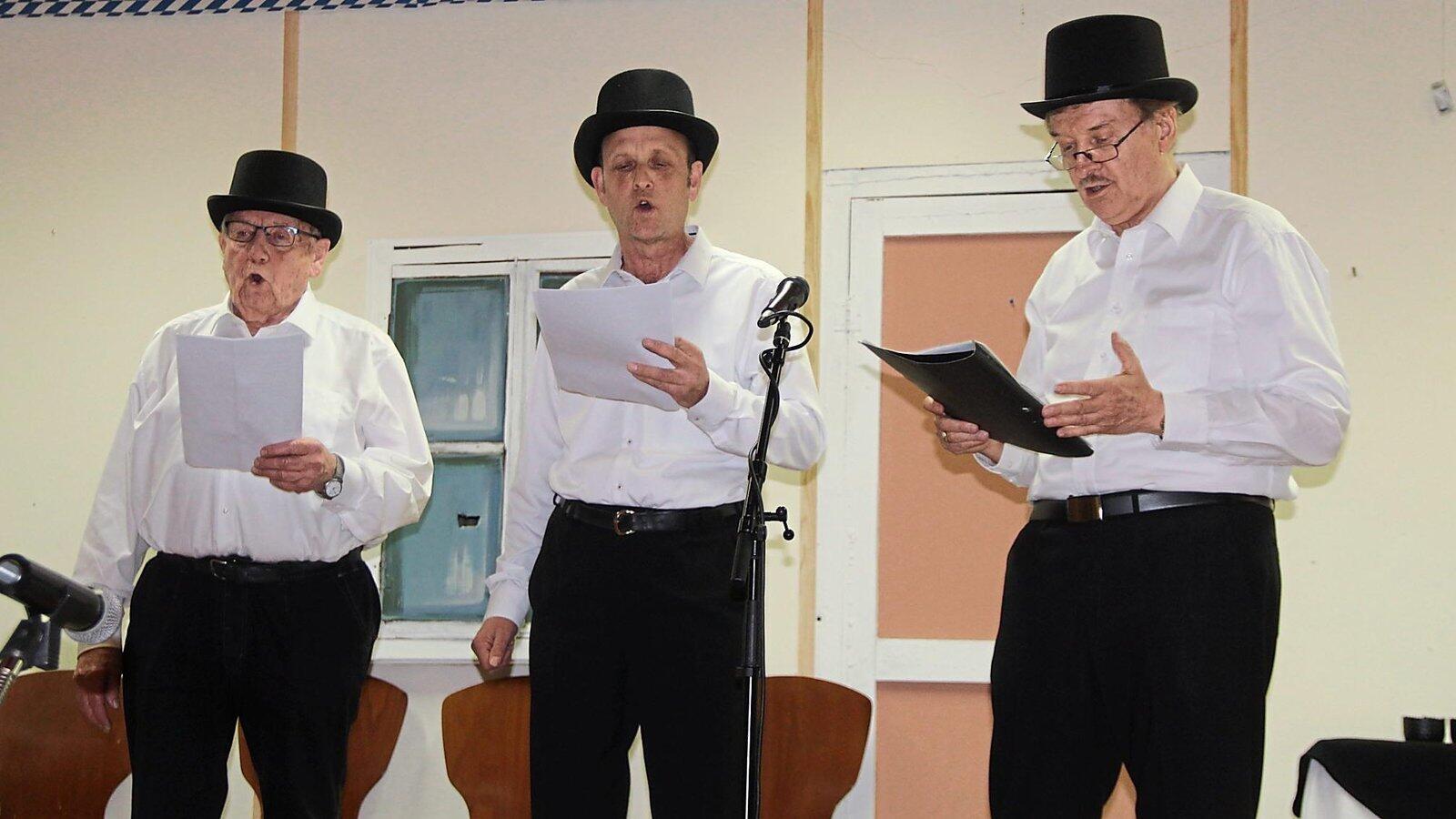 Drei Bänkelsänger (von links Georg Dieß, Alfred Bräu und Helmut Prommersberger) nehmen die Leut’ auf die Schippe.