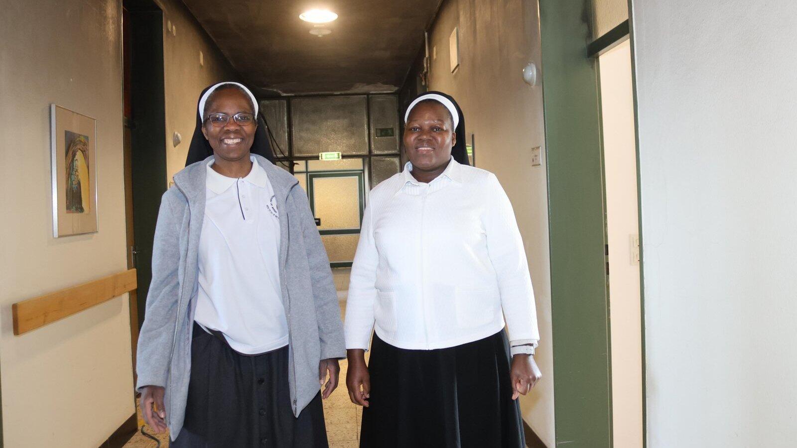 Die Schutzengel der Strahlfelder Schwestern: Schwester Stembile Mhondoro (rechts) entdeckte während ihrer Nachtschicht das Feuer auf der Krankenstation, Schwester Alexia Dendere half bei den Löscharbeiten. Die Decke über ihnen ist noch schwarz gefärbt vom Rauch.