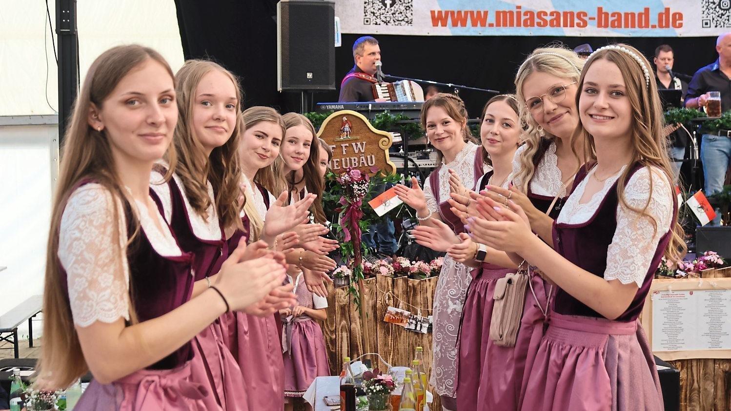 Schon seit Wochen ein Stimmungsgarant bei den Festen der Umgebung und beim eigenen Jubiläum noch mehr gefordert: die Festdamen der FFW Neubäu.