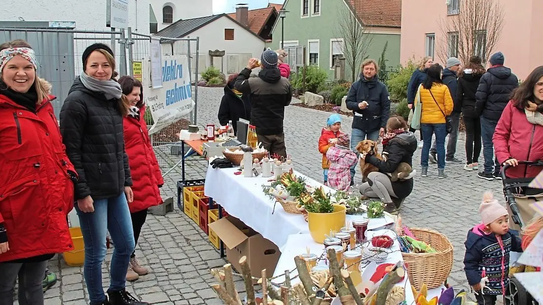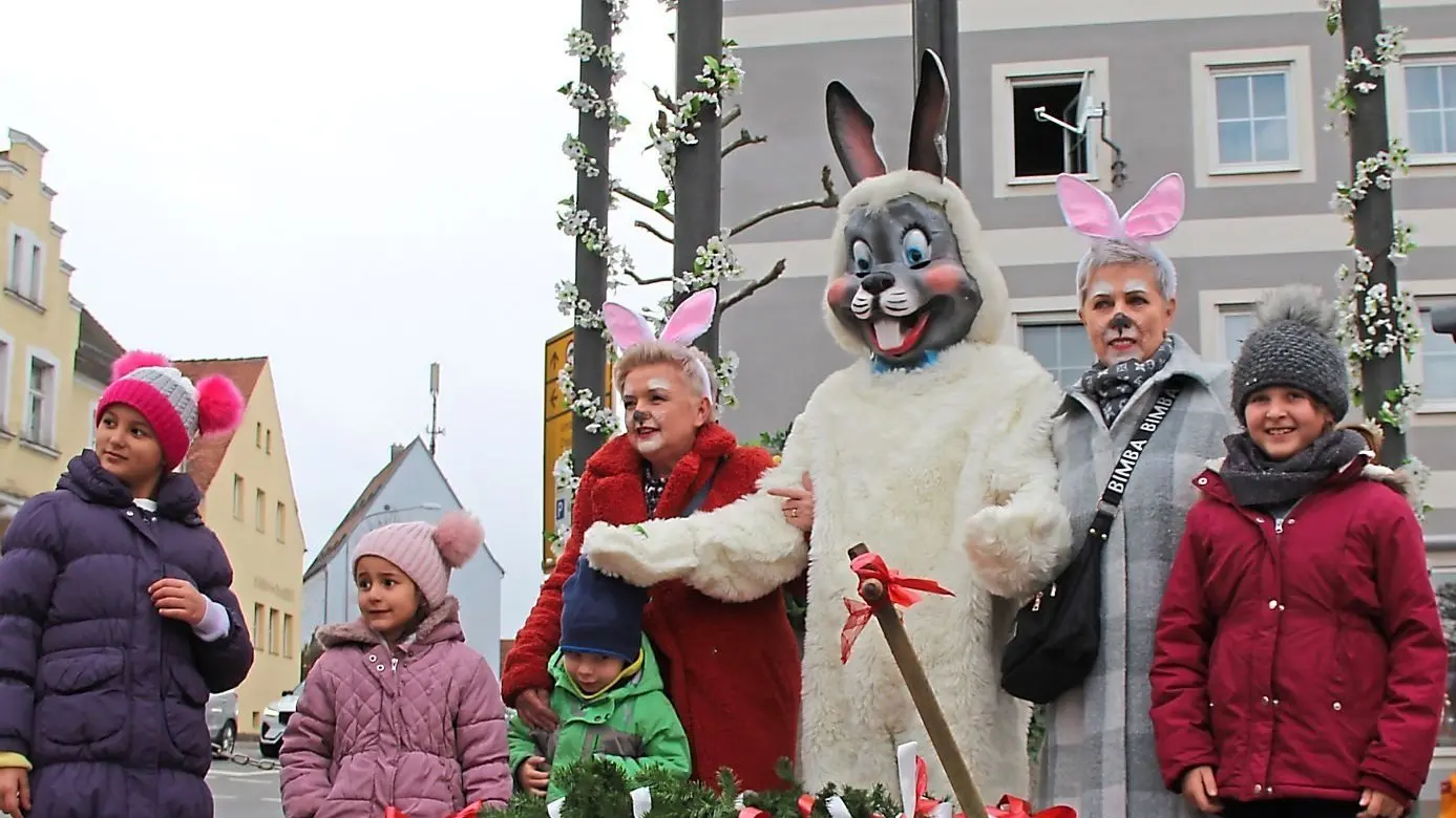 Wenngleich der Flohmarkt am Esper und der Standmarkt in der Schulstraße nicht ihre gewohnt volle Besetzung aufwiesen, so hatten sie doch von ihrer Zugkraft nichts eingebüßt. Und mitten drin der Hase des Werbekreises Schaufenster Roding, der mehr als 700 gefärbte Eier verschenkte, welche seine Assistenten auf einem Leiterwagen mitzogen.