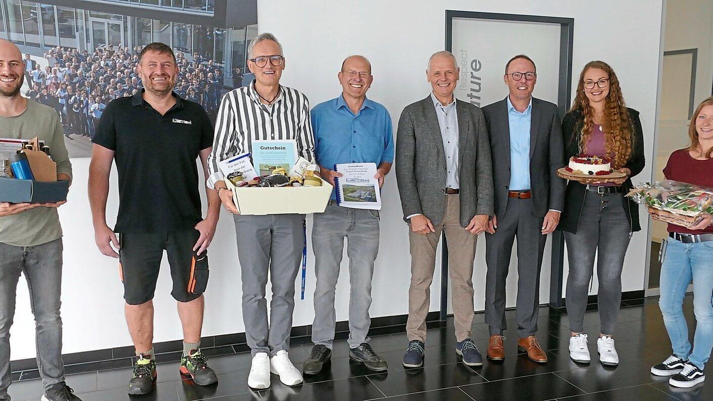 Der verabschiedete Rentner Josef Dirschedl (Vierter von links) zusammen mit der Geschäfts- und Betriebsleitung, dem Betriebsrat und den Kollegen