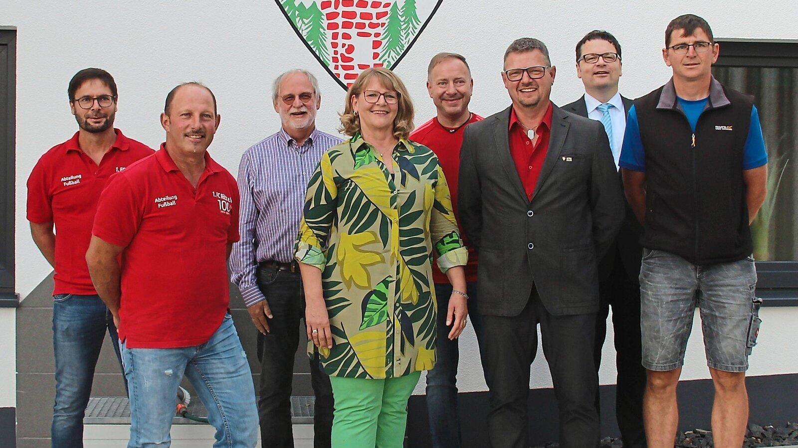 Die neue Vorstandschaft: Martin Maier, Manfred Leopold, Anton Münch, Anita Rötzer, Mario Höcherl, Gerhard Hofmann (von links) und Thomas Steindl (rechts) mit Bürgermeister Dr. Stefan Spindler (Zweiter von rechts)