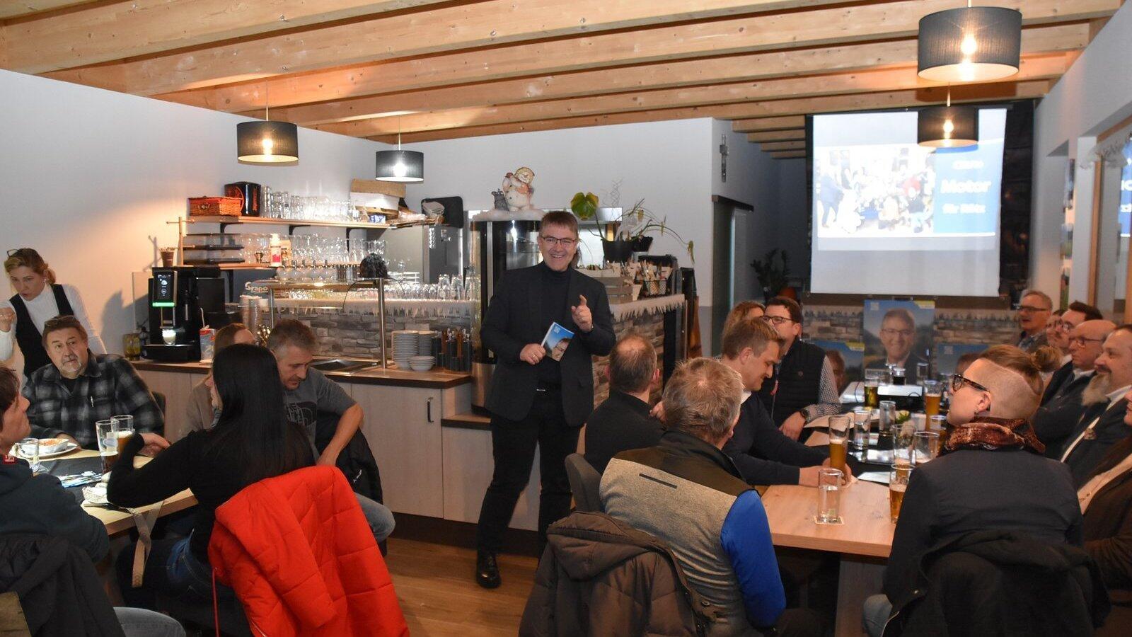 Michael Multerer, Bewerber um das Amt des Landrats, stellt sich bei der Auftaktversammlung der CSU Rötz vor.