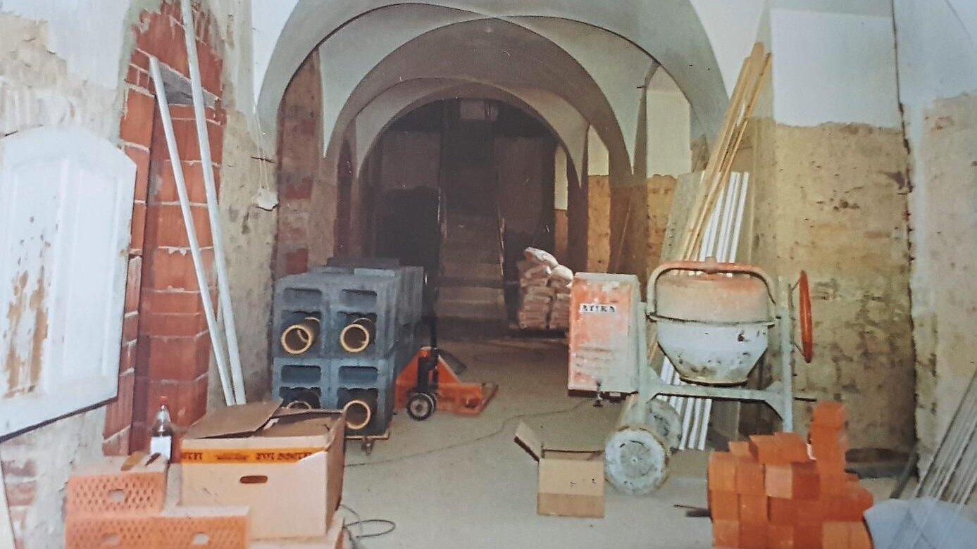 Die Arbeiten sind auf diesem Bild gerade in vollem Gange. Die Gewölbe konnten erhalten werden.
