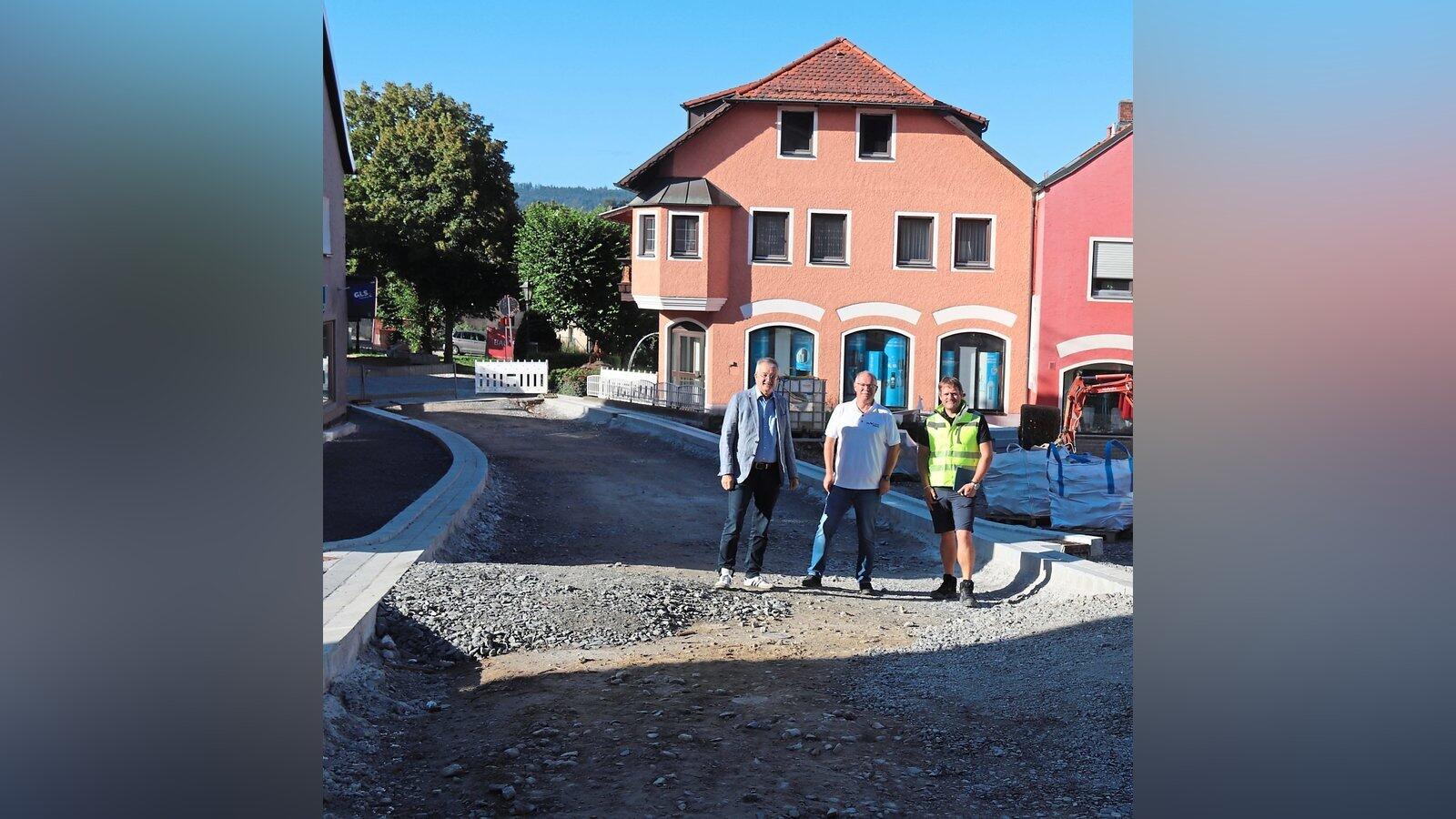Informieren über den Sachstand: Bürgermeister Markus Ackermann, Siegfried Wagner vom gleichnamigen Bauunternehmen und Martin Fischer vom Ingenieurbüro Riedl.