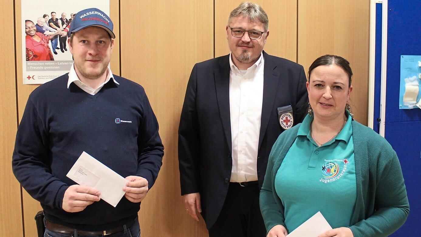Referatsleiter Stefan Raab (Mitte) überbrachte nicht nur die Grüße der Vorsitzenden, sondern übergab je eine Spende an die Jugendgruppen von Wasserwacht und Jugendrotkreuz.