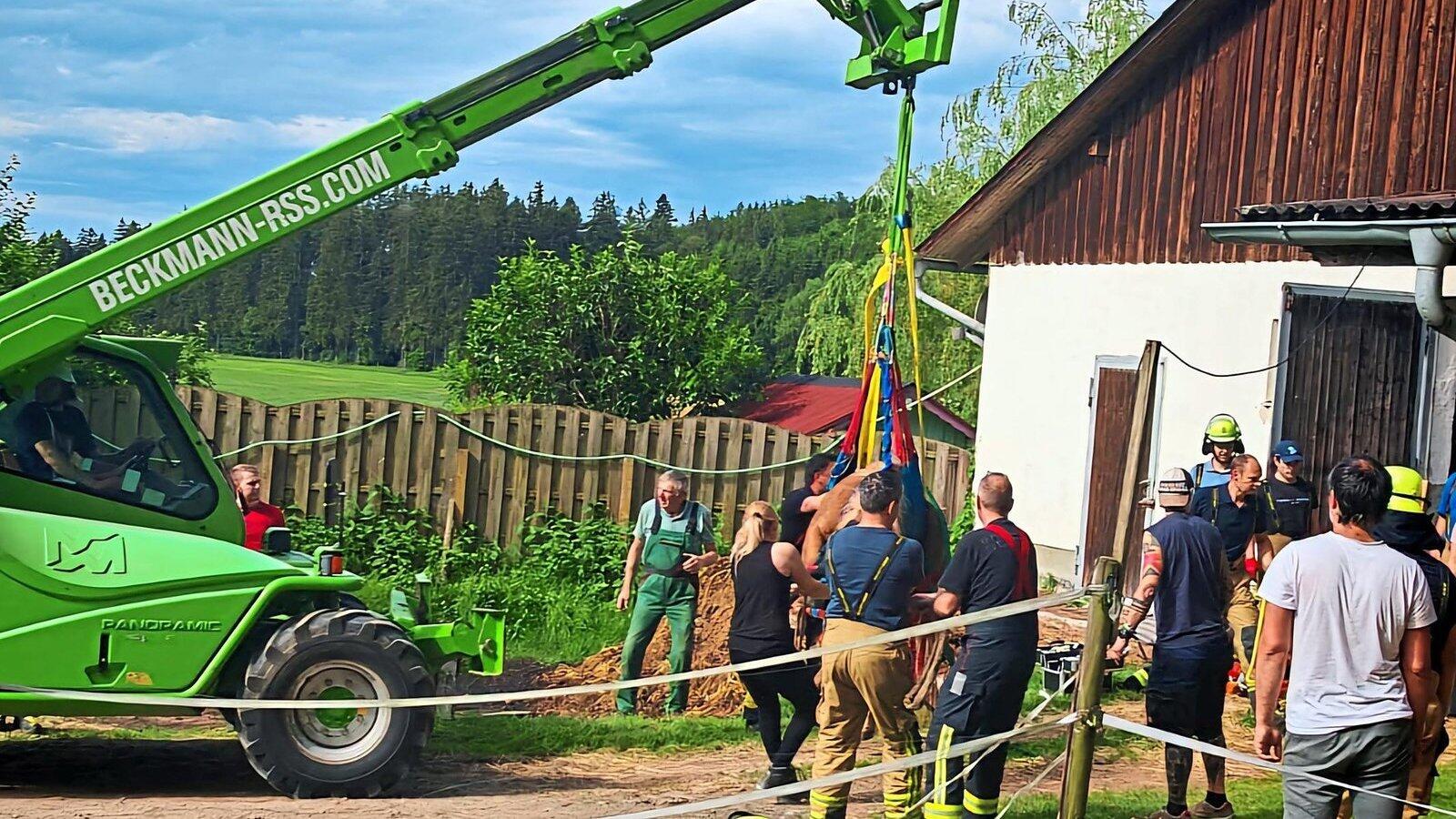 FFW befreit 27-jährige Haflinger-Stute aus Gülleschacht in Waldmünchen